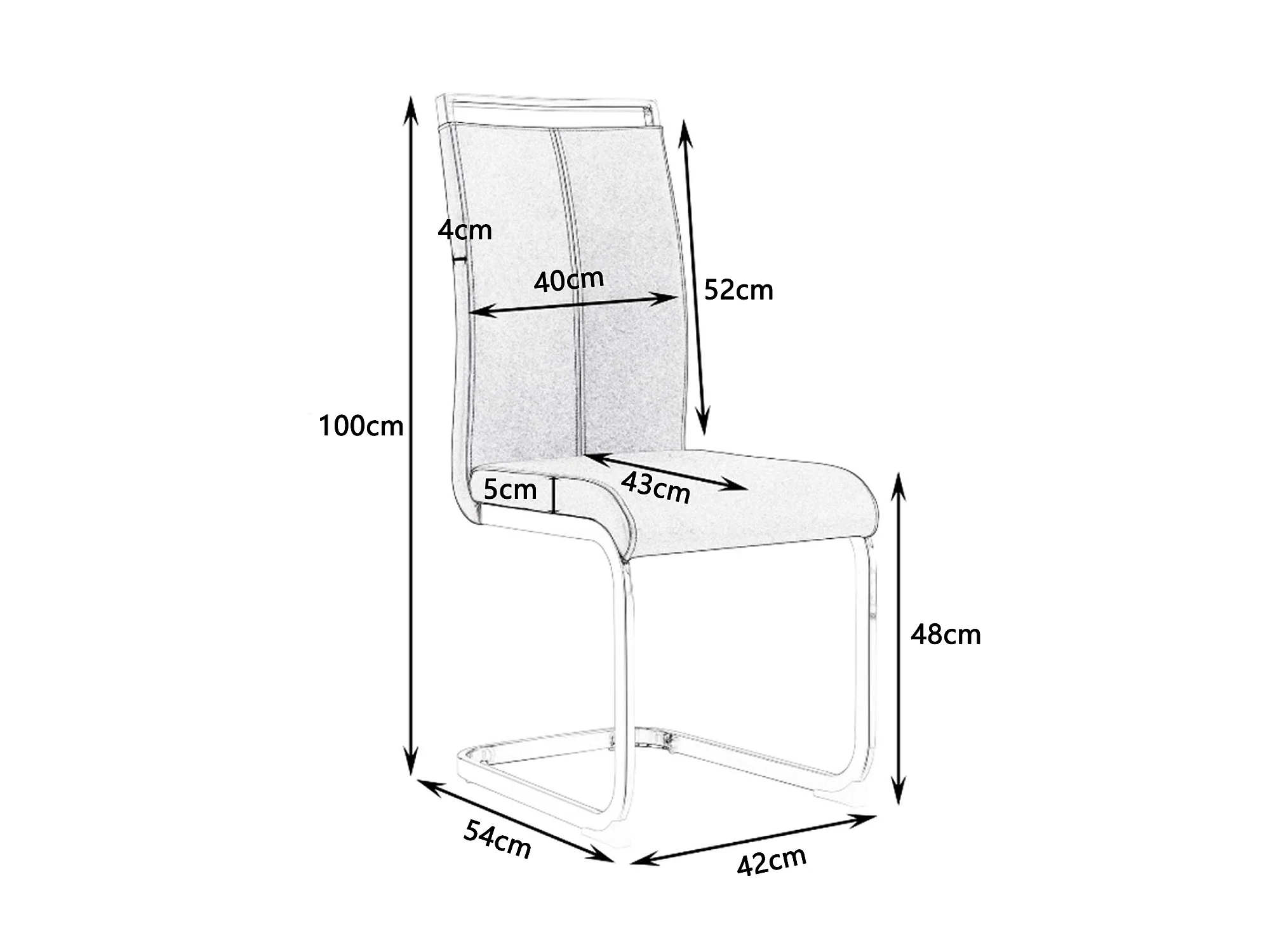Lot de 4 Chaises cantilever en similicuir - structure en métal chromé - Blanc