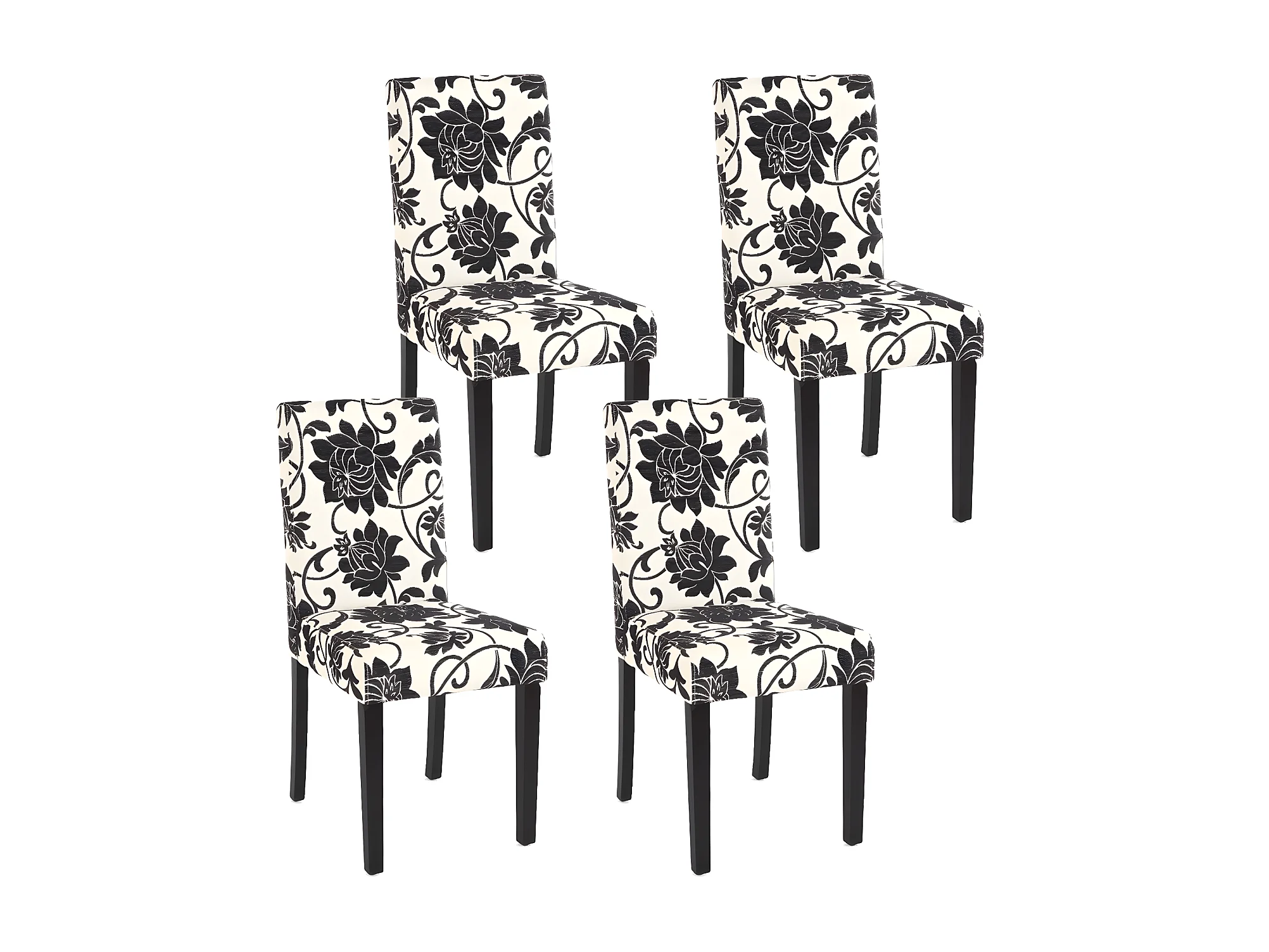 Lot de 4 chaises de salle à manger en tissu imprimé blanc&noir pieds foncés CDS04122