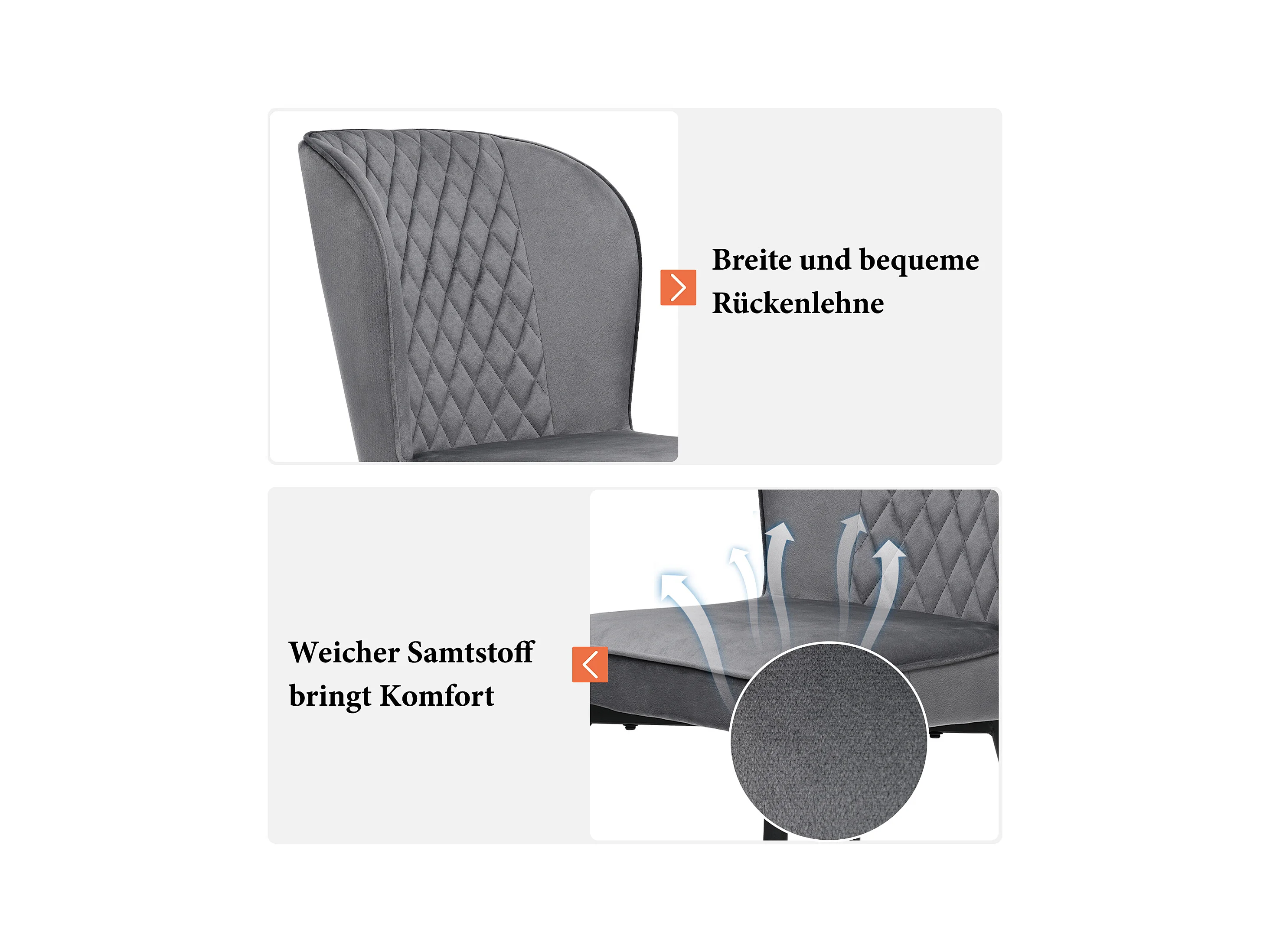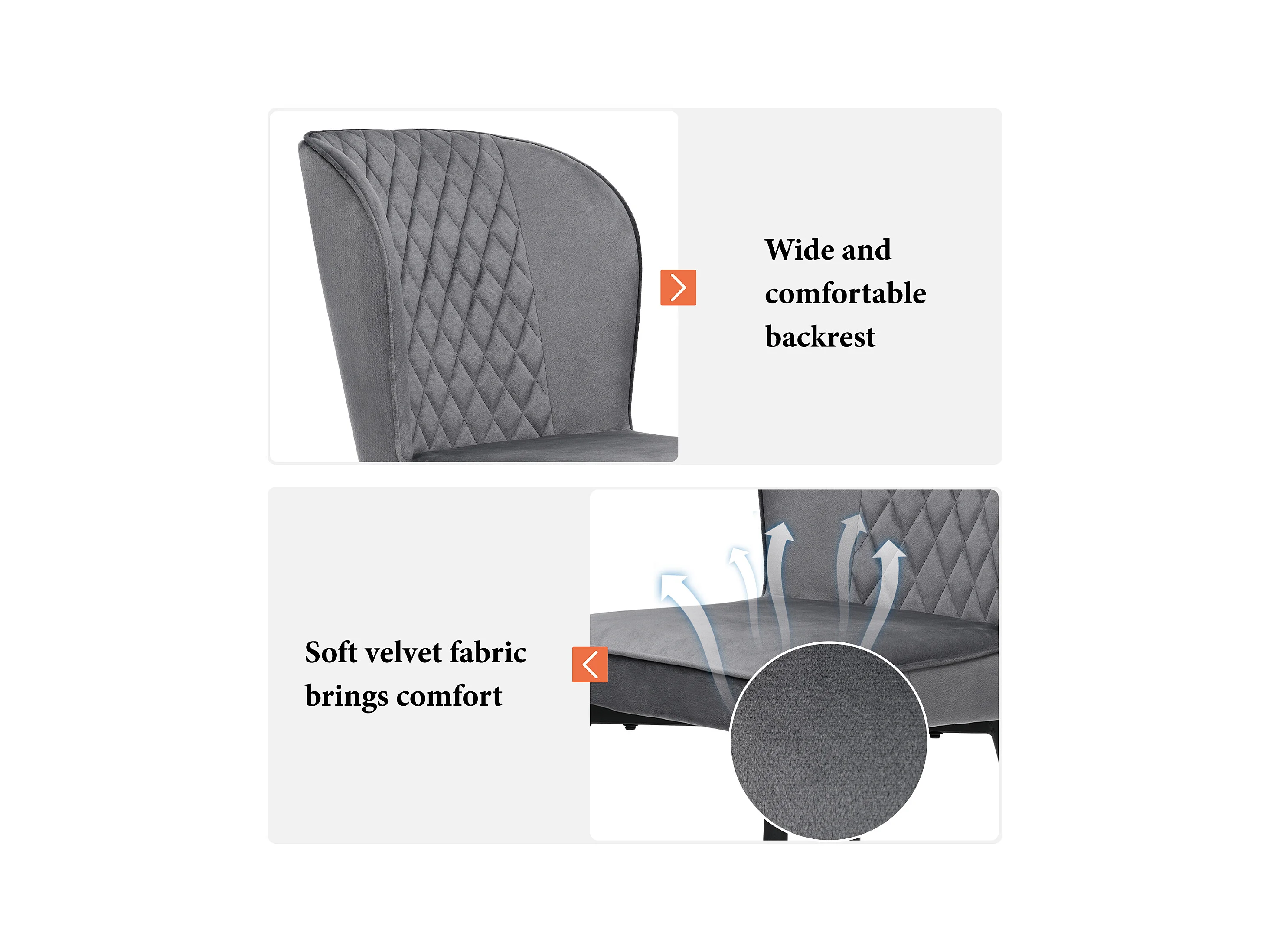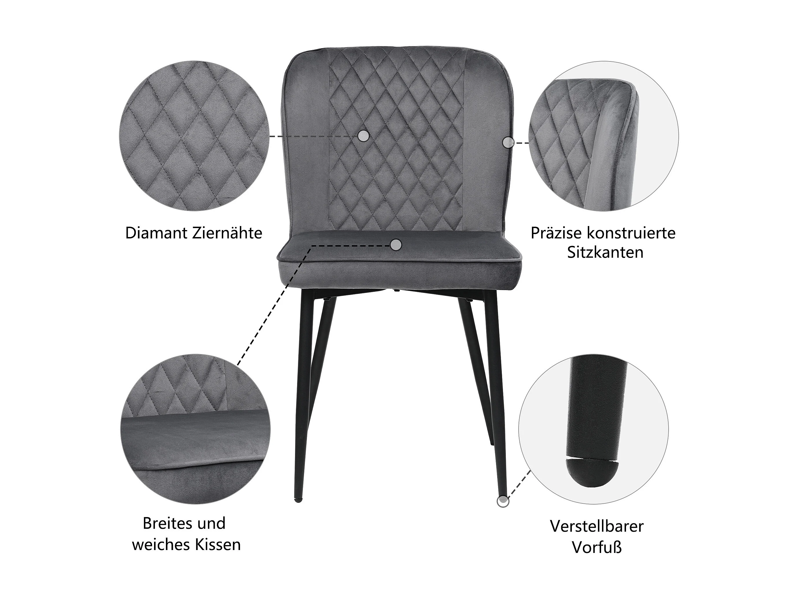 Lot de 4 chaises de salle à manger en velours - pièds en métal - gris