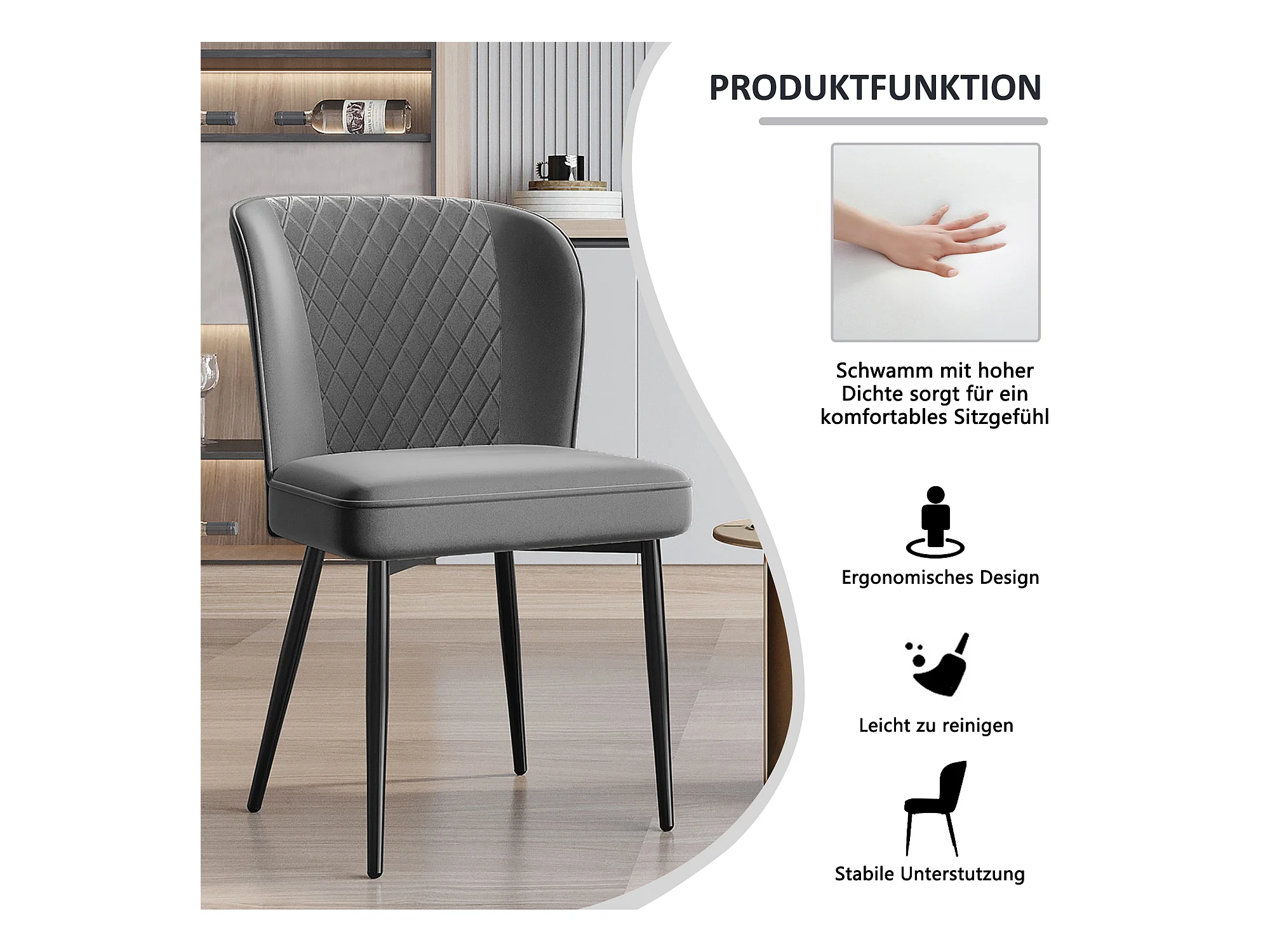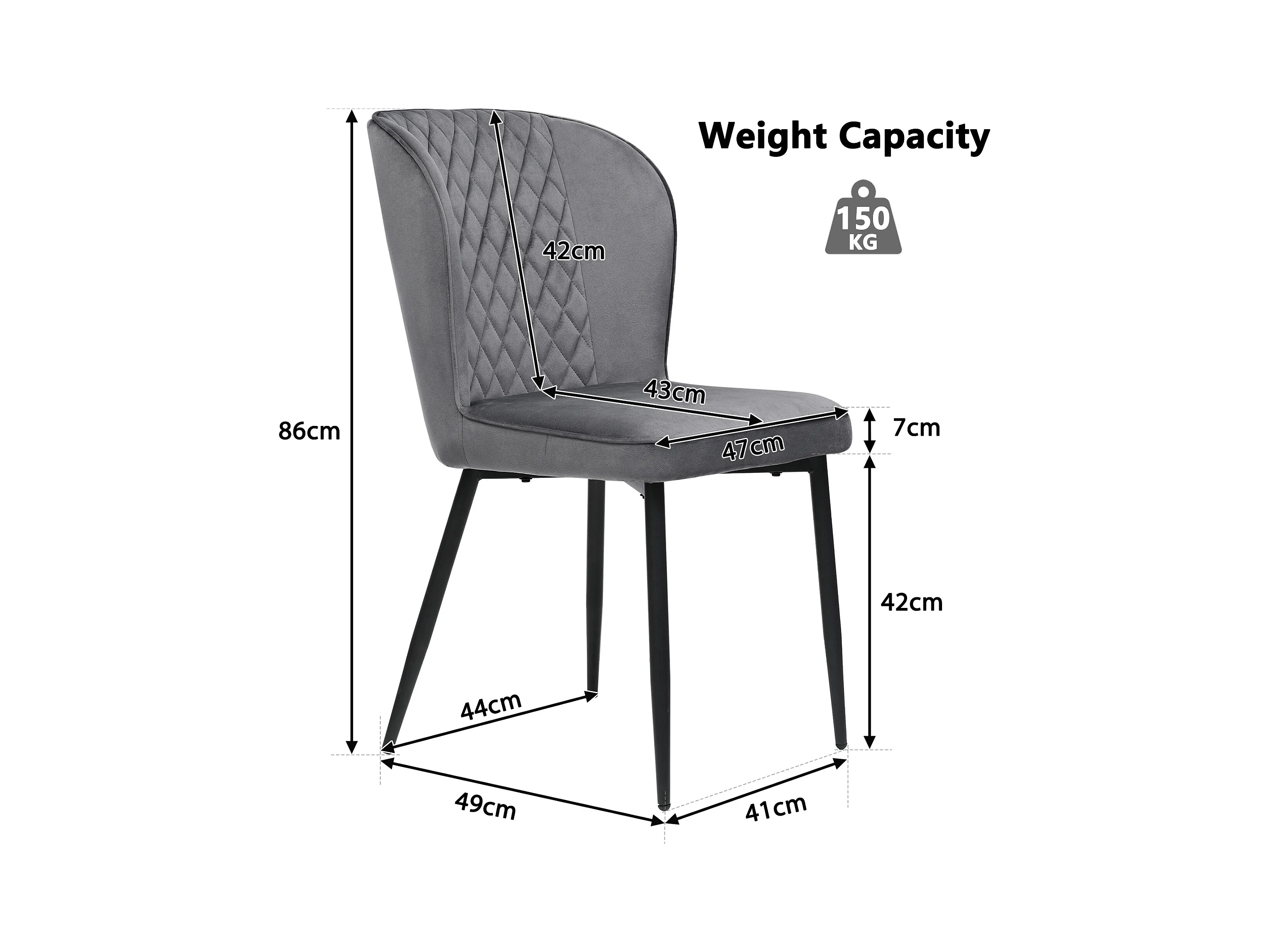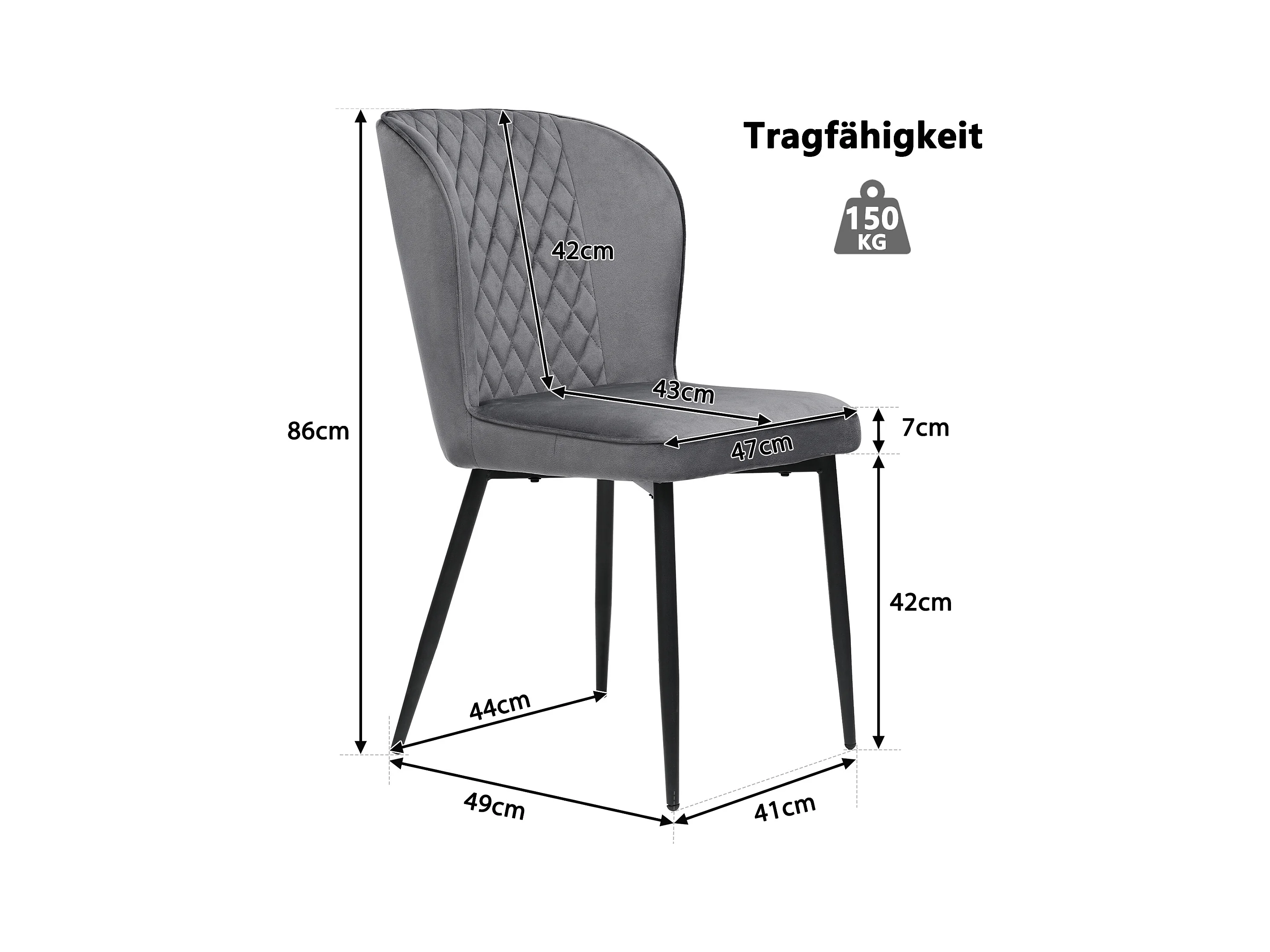 Lot de 4 chaises de salle à manger en velours - pièds en métal - gris