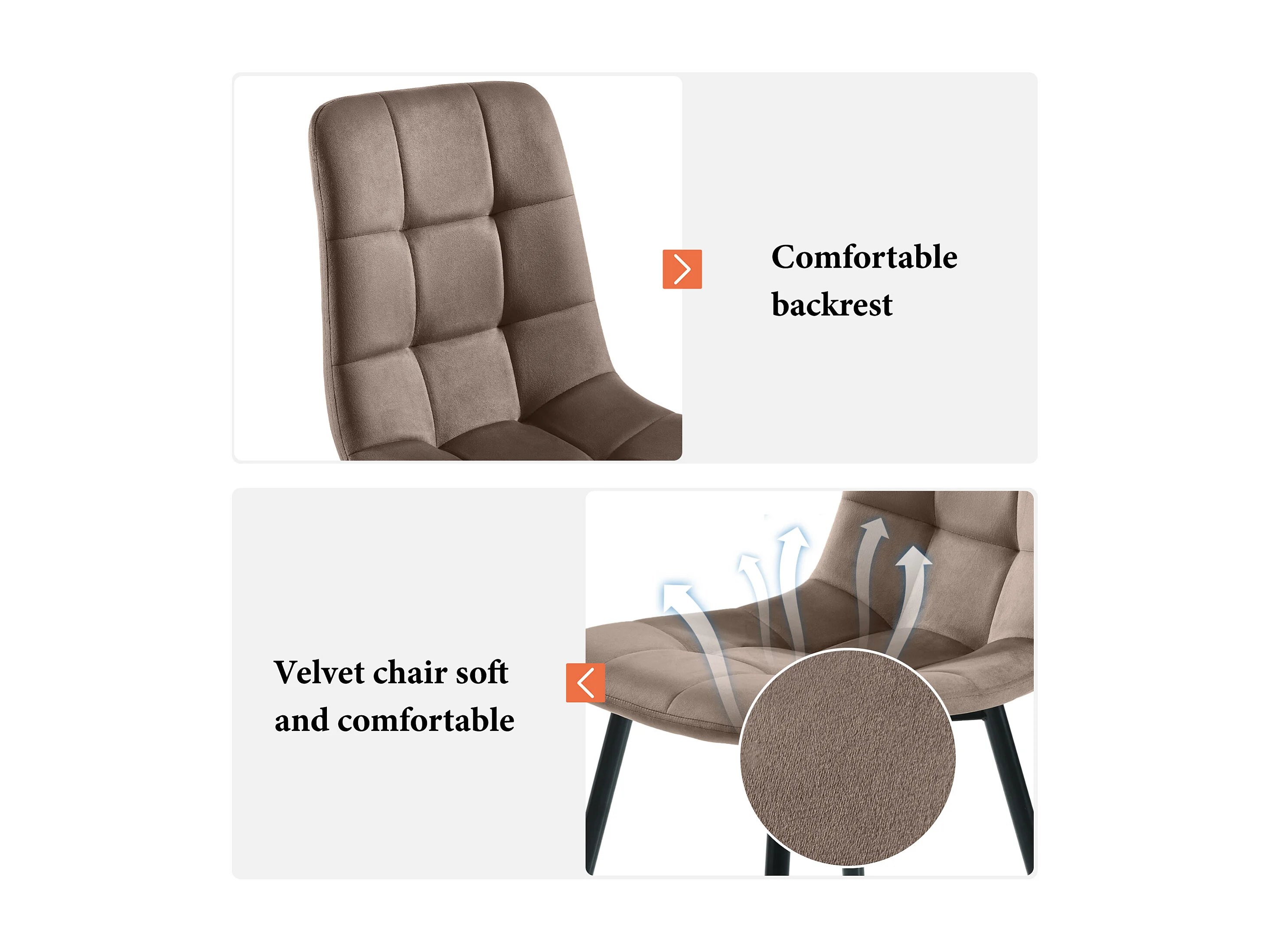 Lot de 4 chaises de salle à manger, Marron, assise en velours, dossier confortable, structure métal