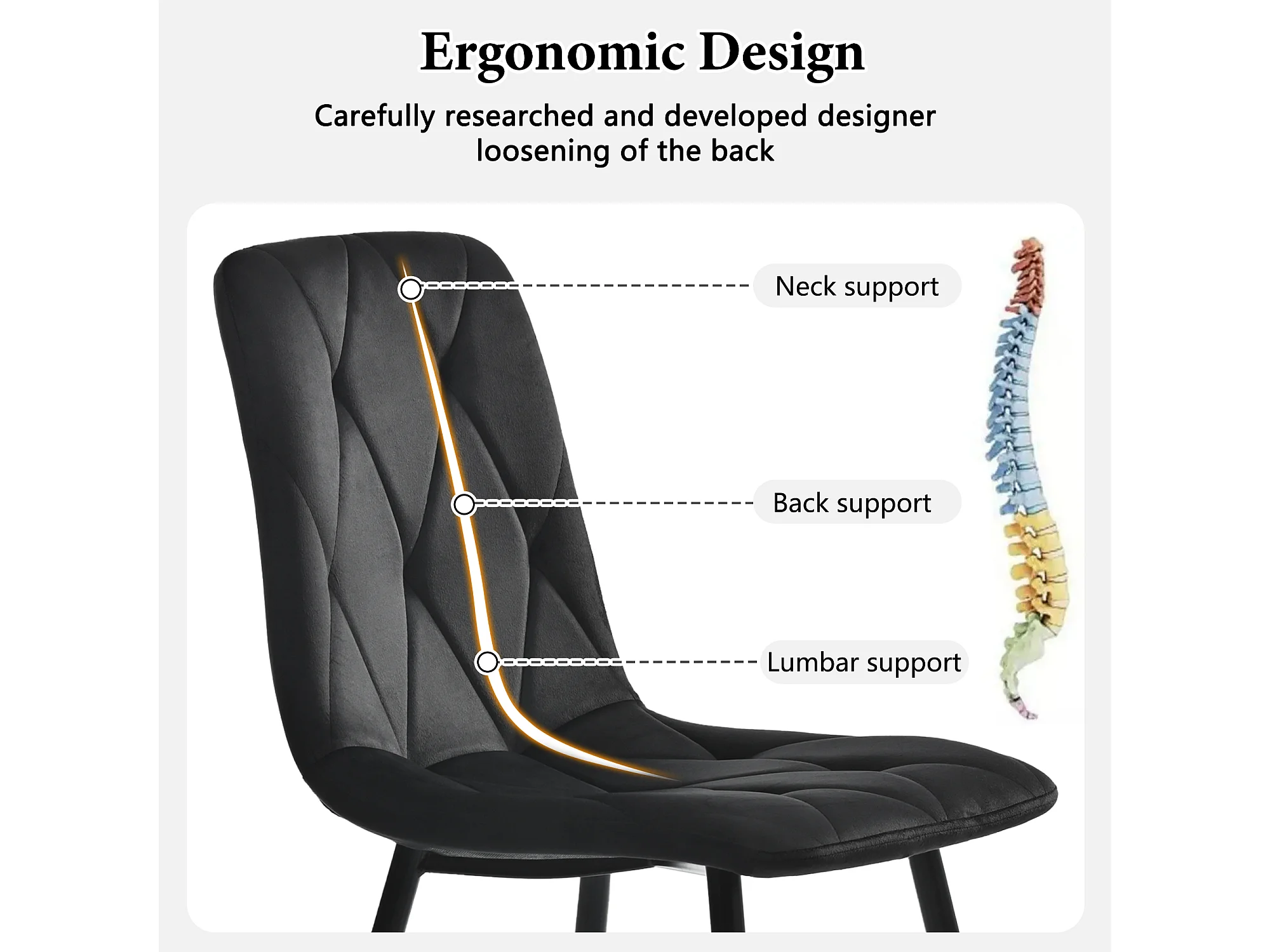 Lot de 4 chaises de salle à manger, Noir, en velours, avec dossier et pieds métalliques