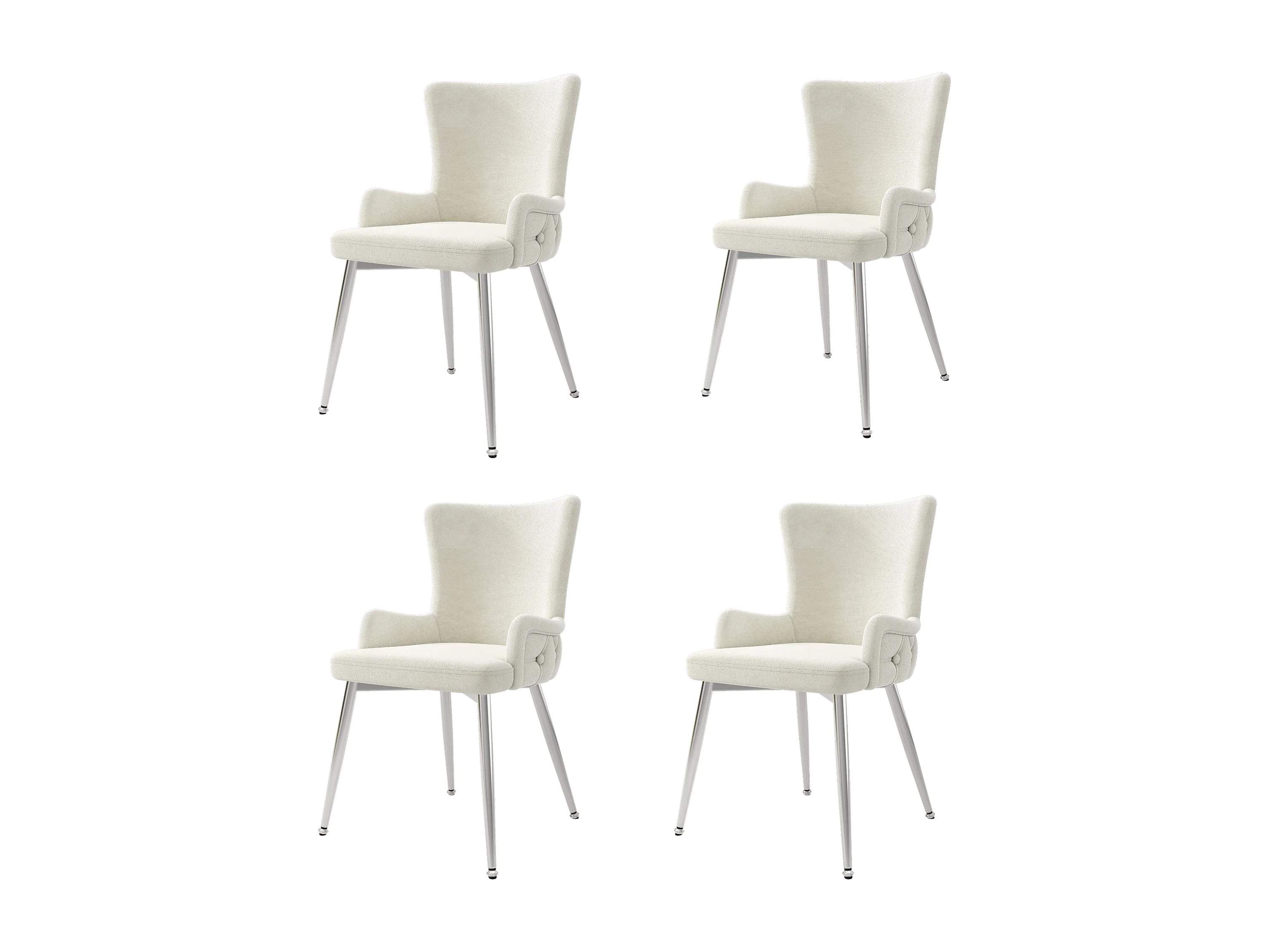 Lot de 4 chaises de salle à manger - pieds en métal argenté - velours beige - pour salon et salle à manger