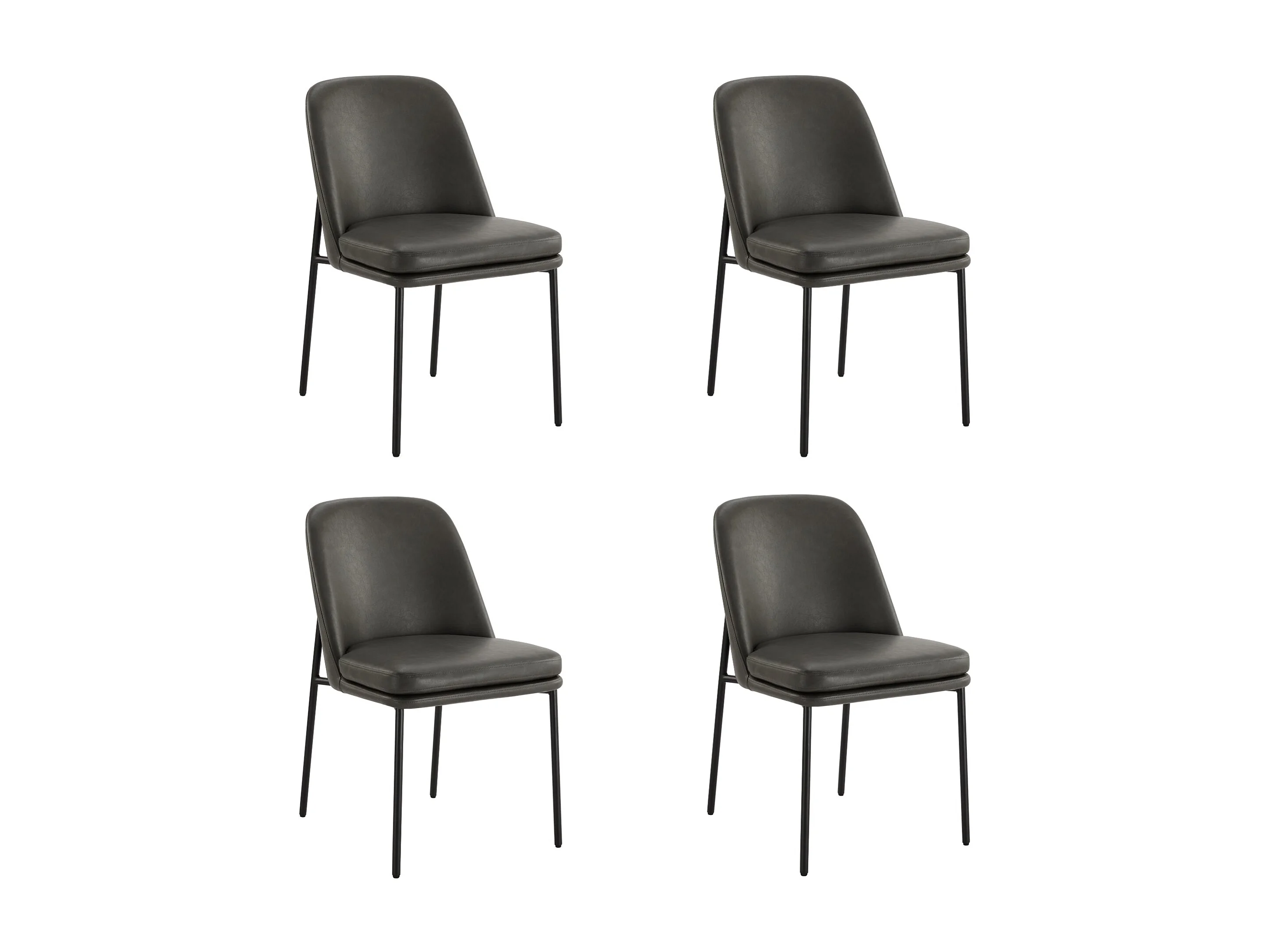 Lot de 4 Chaises de Salle à Manger, Pieds en Métal, Avec Dossier, en PU, Style Moderne Gris foncé