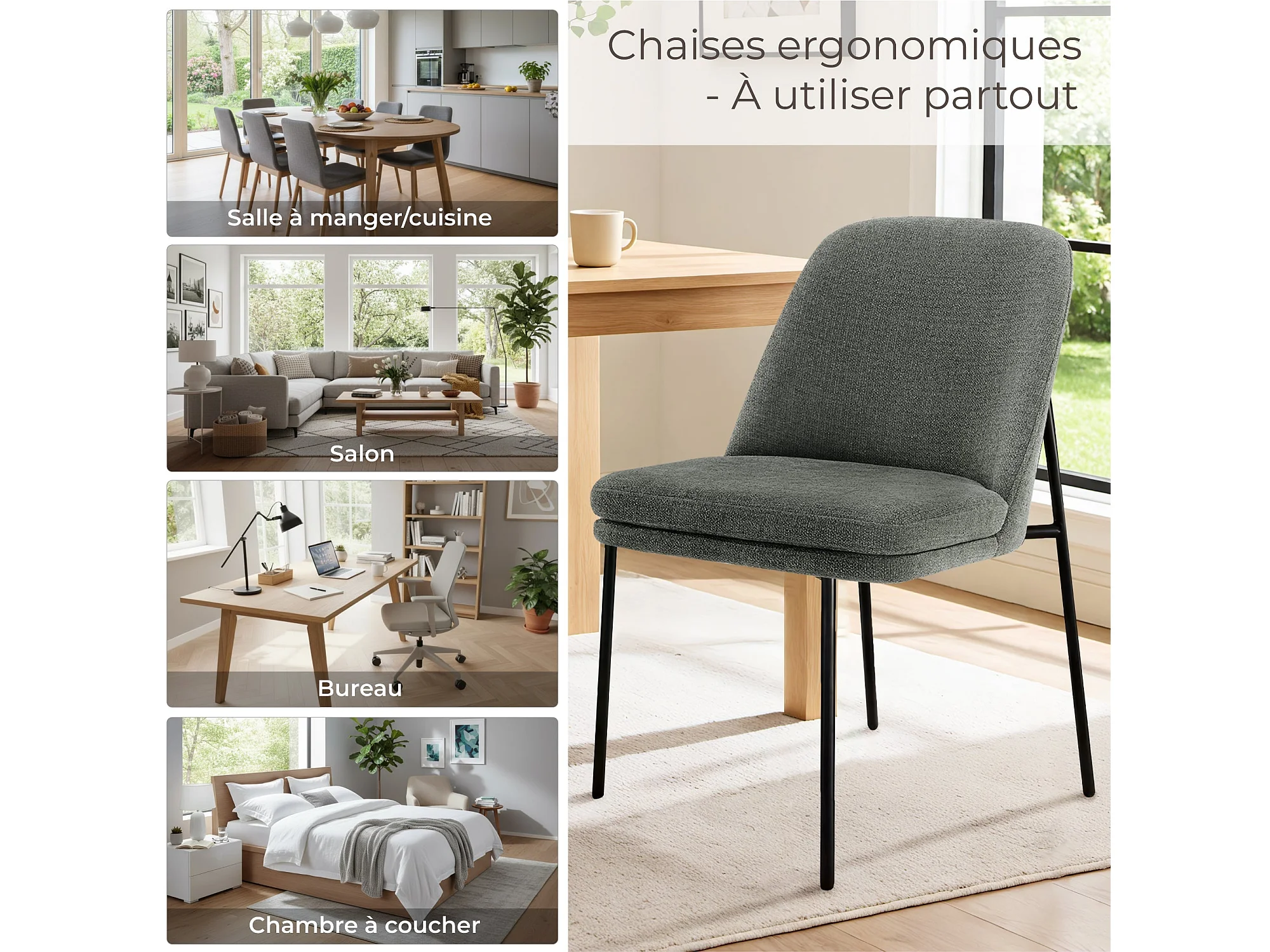 Lot de 4 Chaises de Salle à Manger, Pieds en Métal, Avec Dossier, Style Moderne Gris foncé