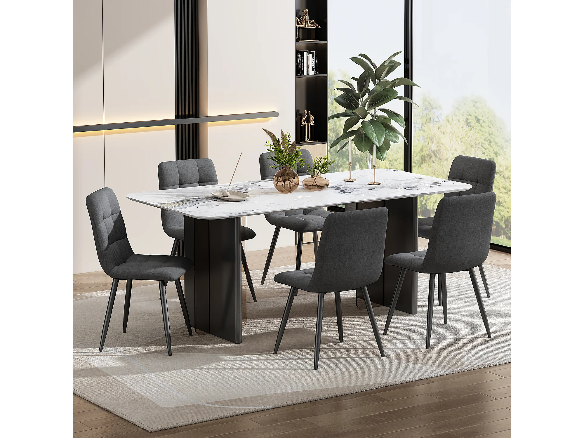 Lot de 4 chaises de salle à manger - velours gris foncé - dossier rembourré - structure en métal