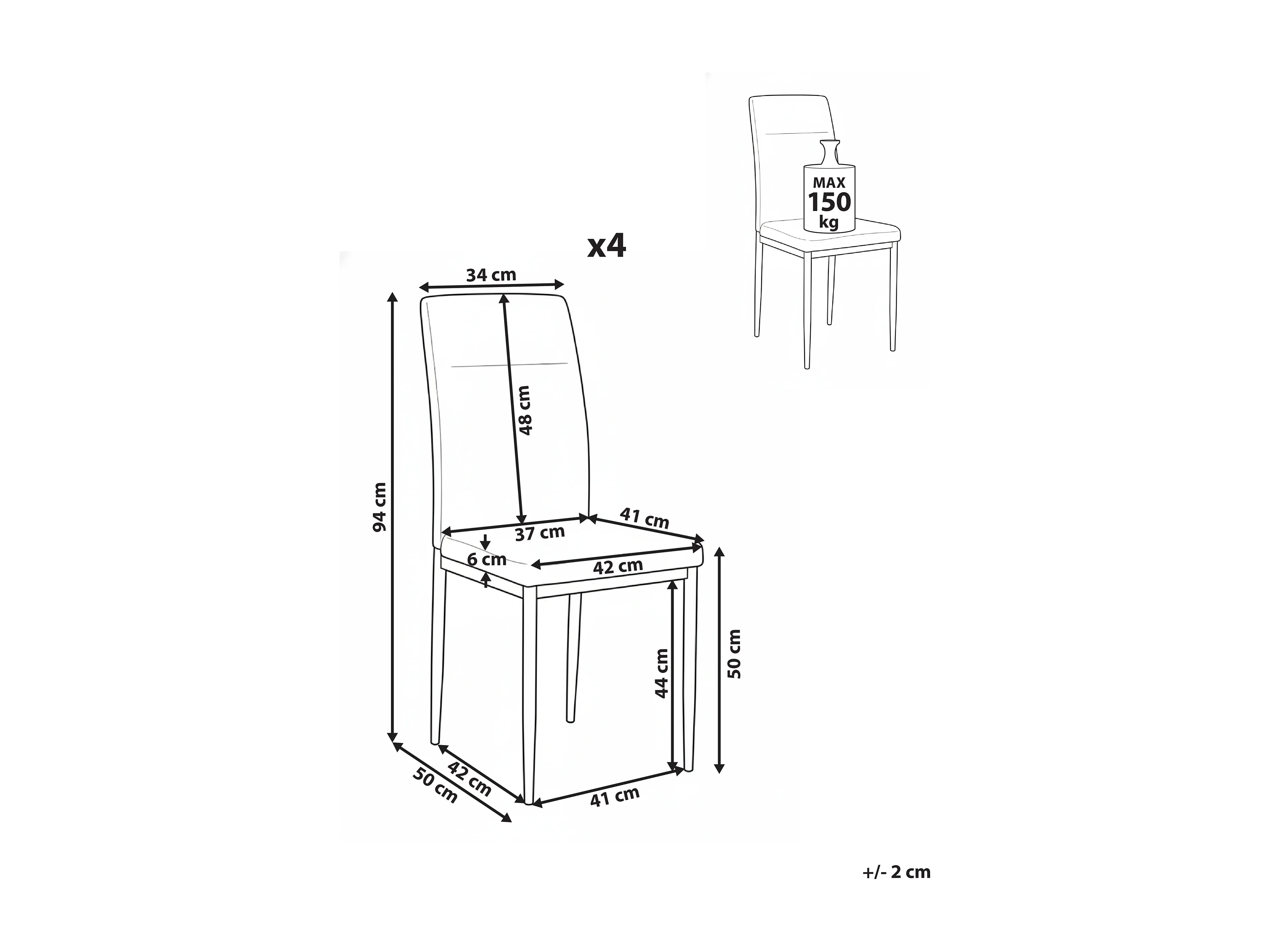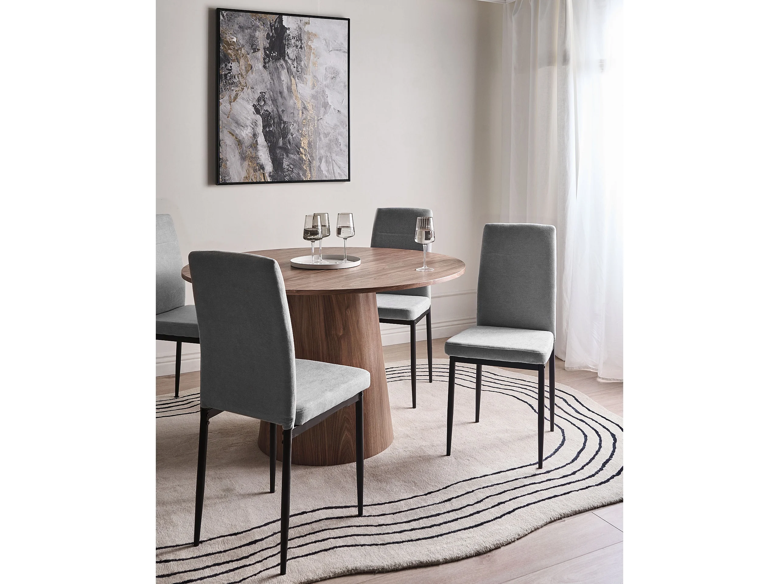 Lot de 4 chaises de salle à manger RINER Tissu Gris