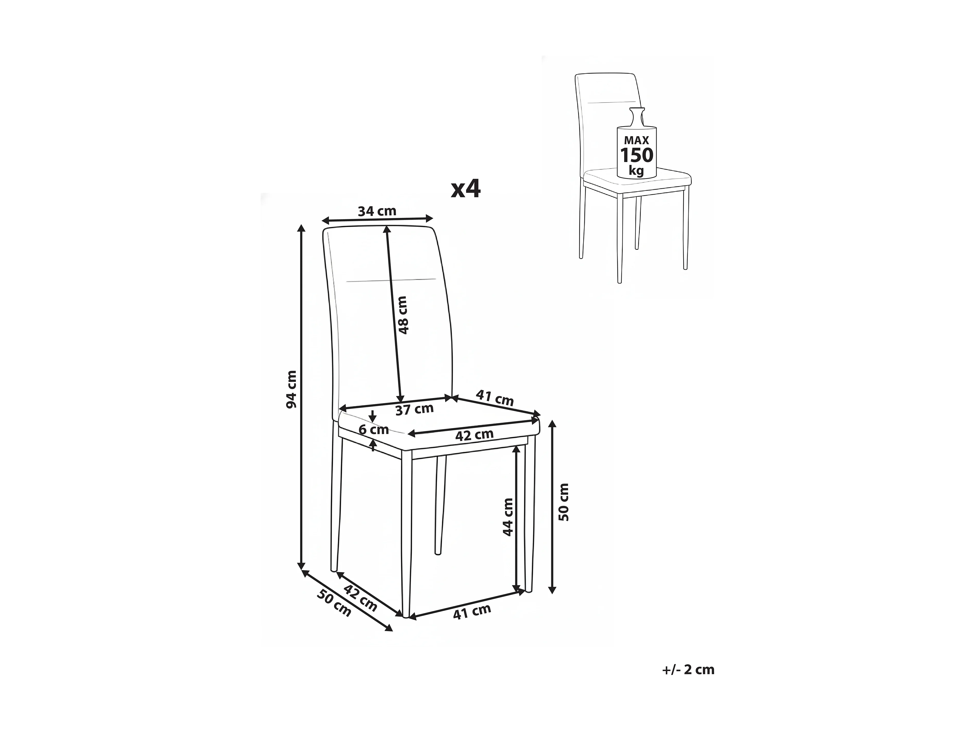 Lot de 4 chaises de salle à manger TILLER Gris