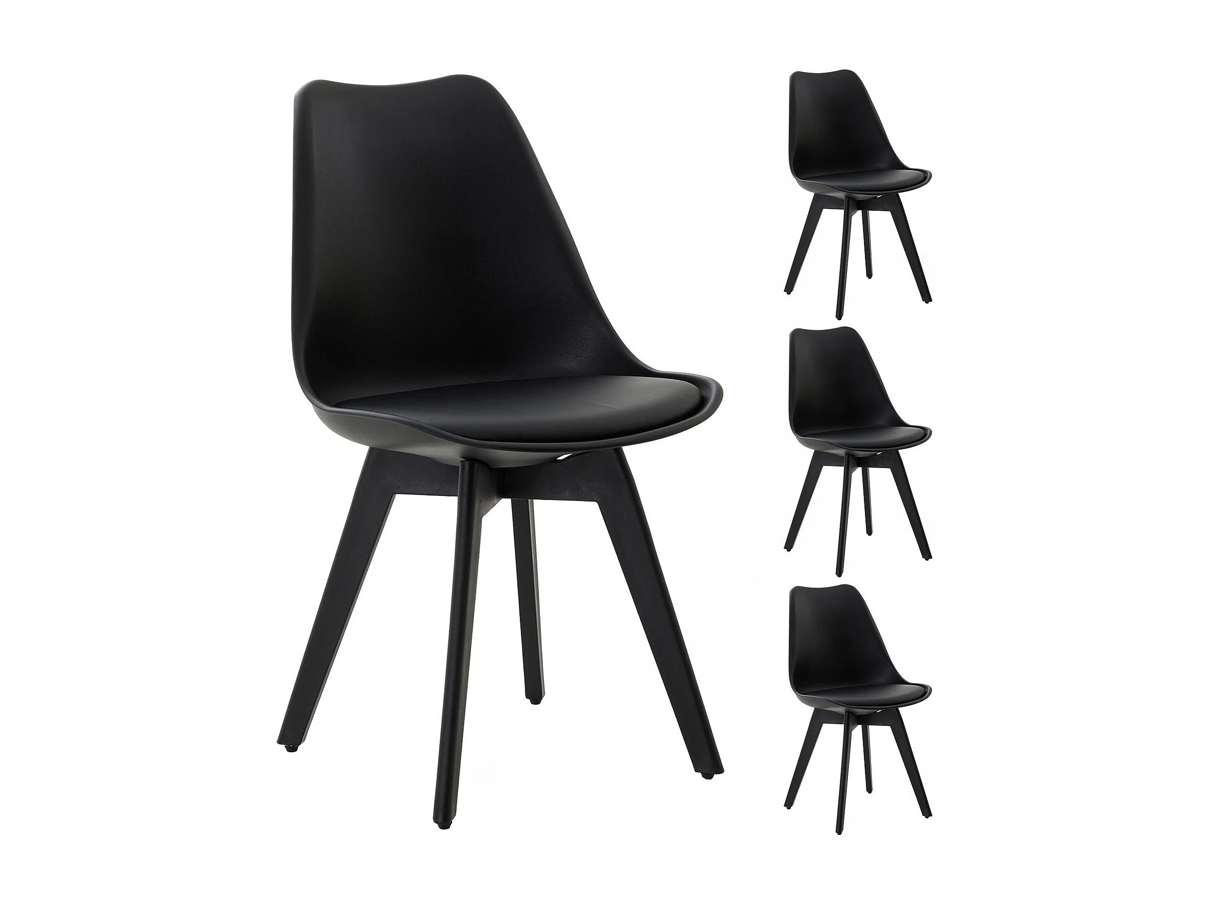 Lot de 4 chaises de salle à manger ROUEN, chaises de cuisine en plastique noir avec coussin d'assise