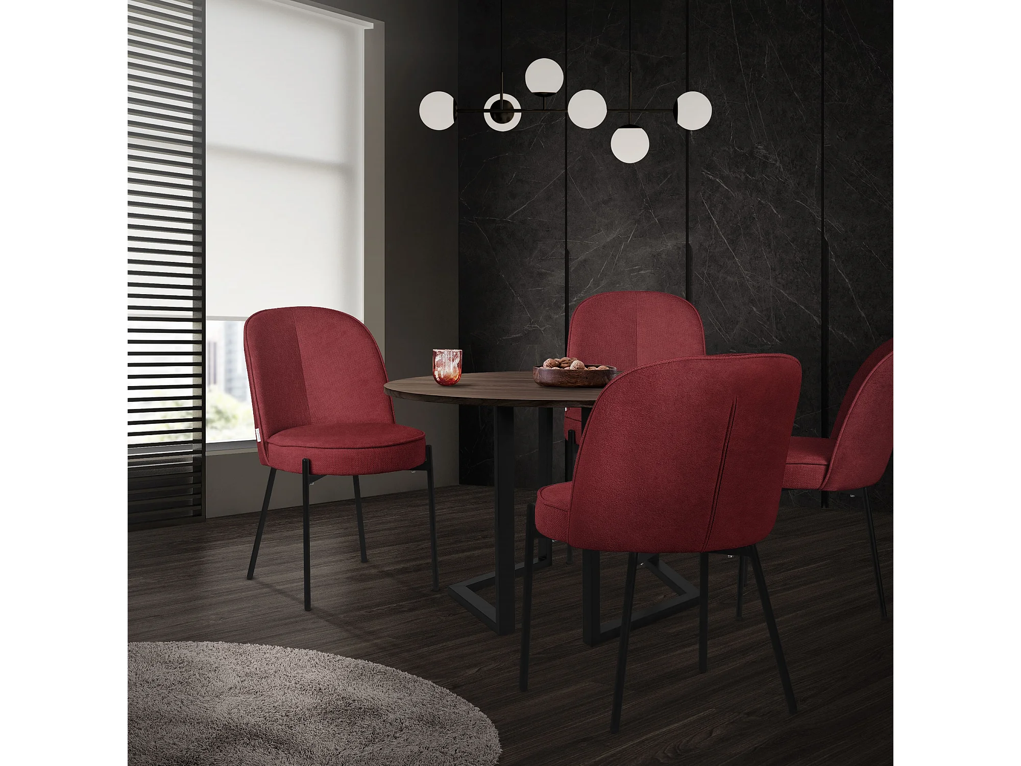 Lot de 4 chaises de salle à manger rouge en polyester pieds en métal dossier arrondi ergonomique assise rembourrée sièges pour cuisine et salon