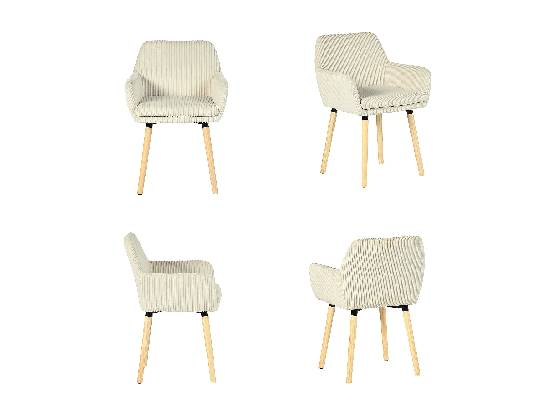 Lot de 4 chaises de salle à manger velours côtelé scandinave, ELIA