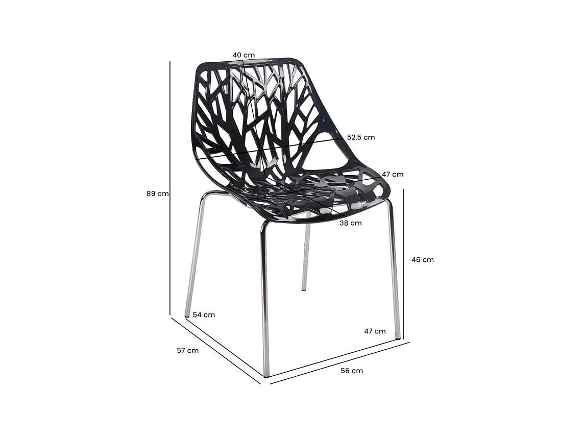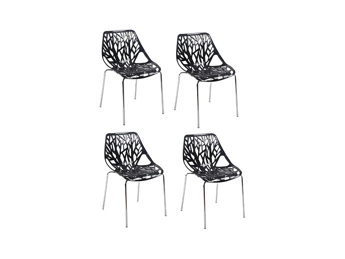Lot de 4 chaises empilables noires avec pieds métal chromé - TIMBER