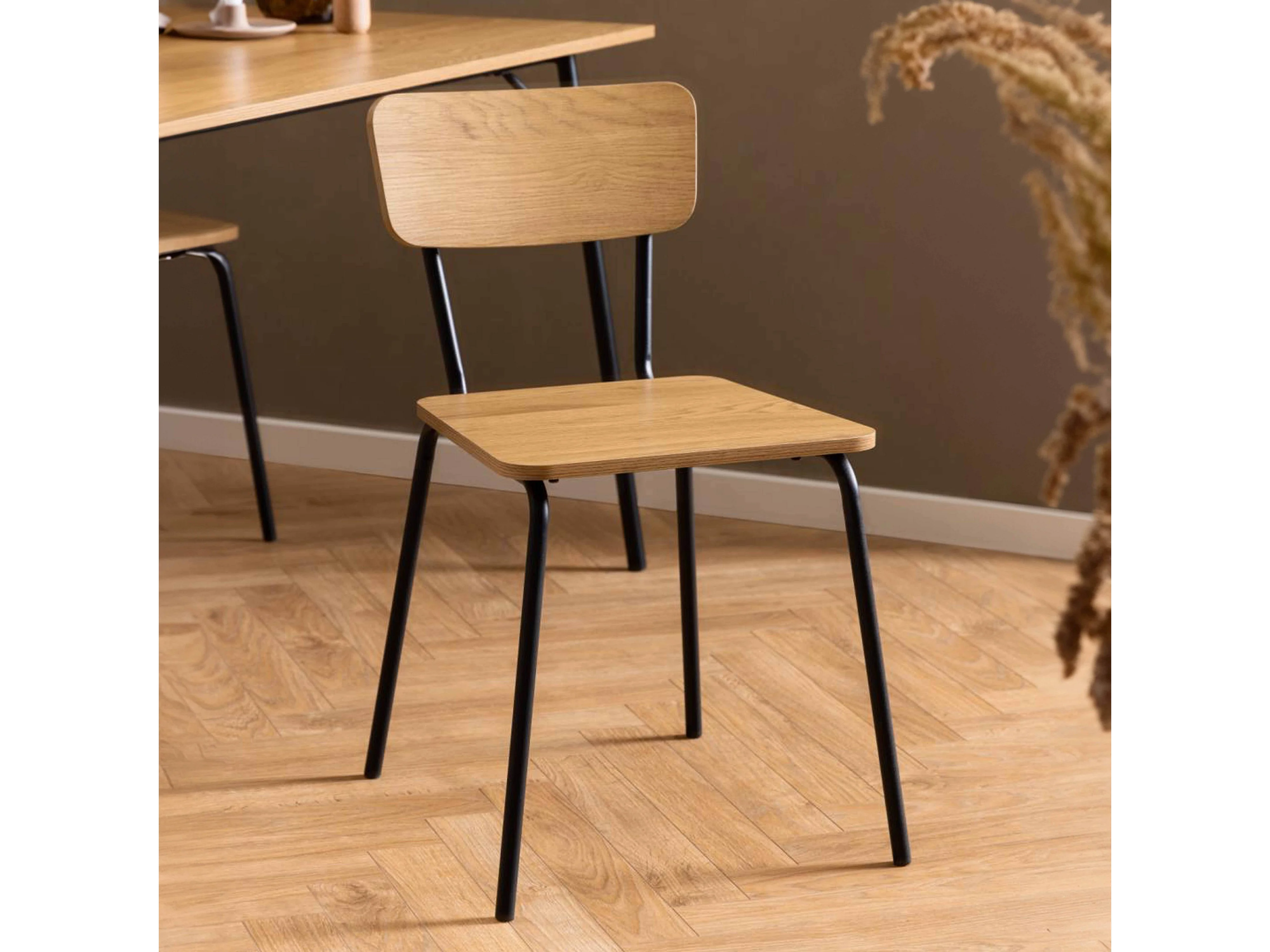 Lot de 4 chaises en acier effet chêne