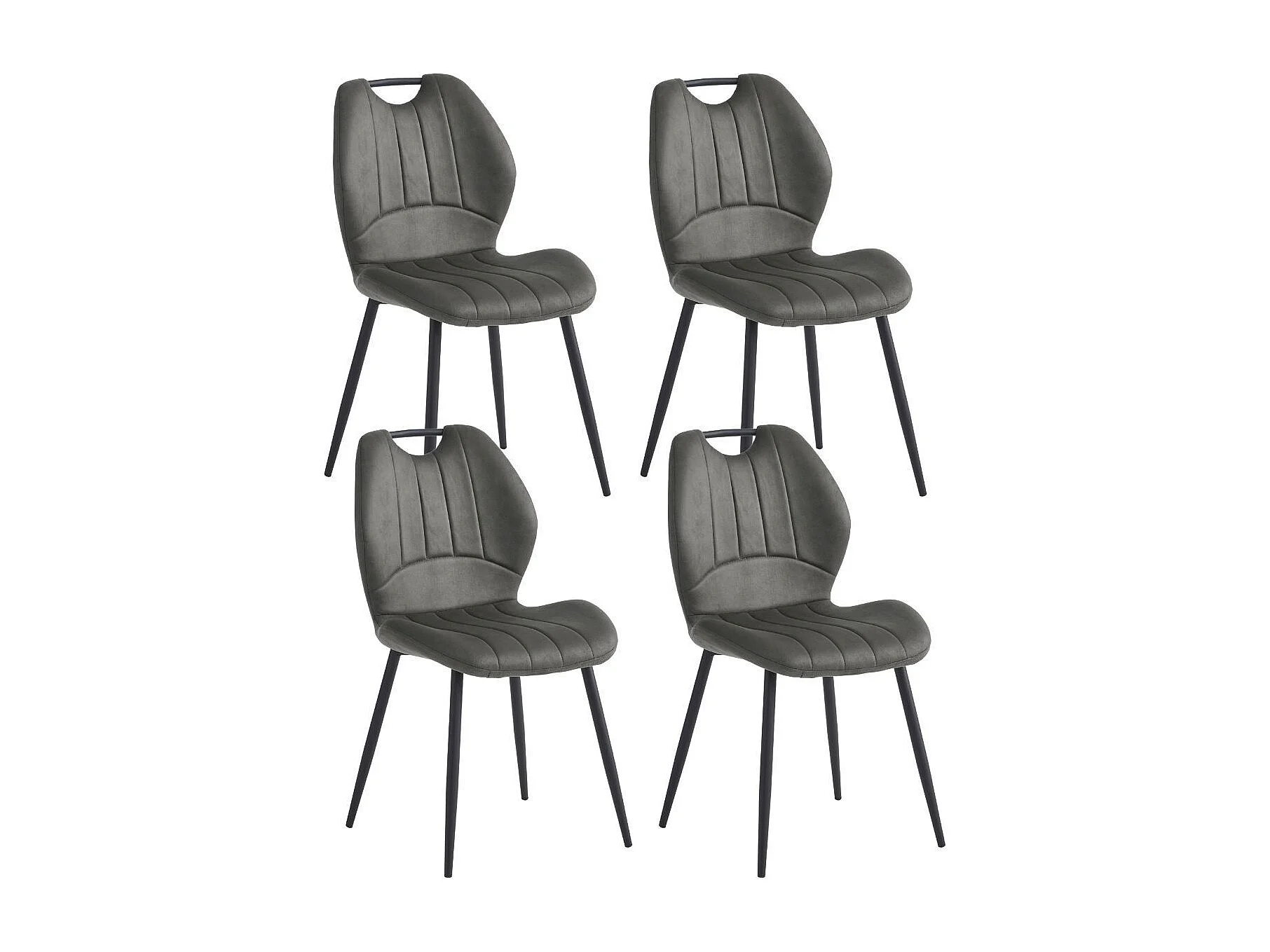 Lot de 4 chaises en tissu microfibre gris avec poignée et pieds métal laqué anthracite - ALDIM