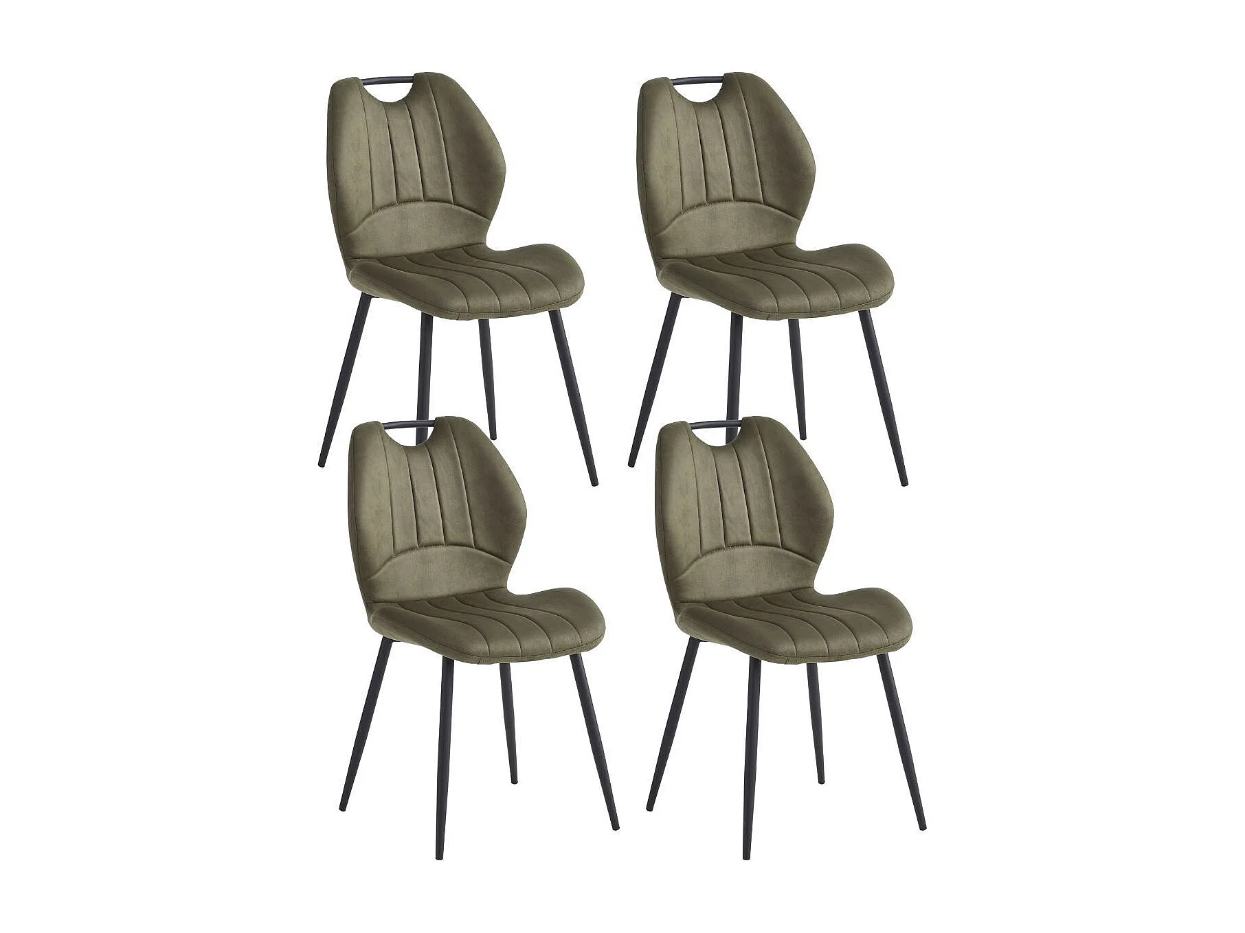 Lot de 4 chaises en tissu microfibre vert avec poignée et pieds métal laqué anthracite - ALDIM