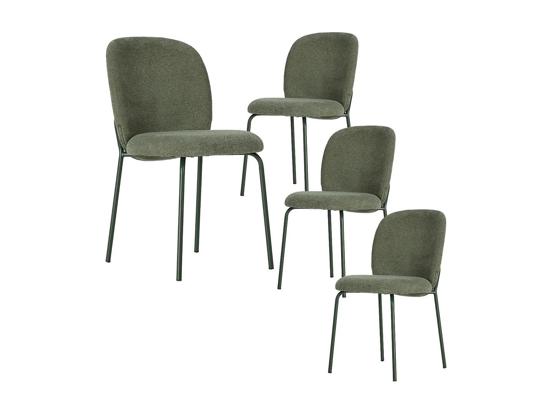 Lot de 4 chaises en tissu polyester doux vert et pieds en métal laqué noir - DARRIS