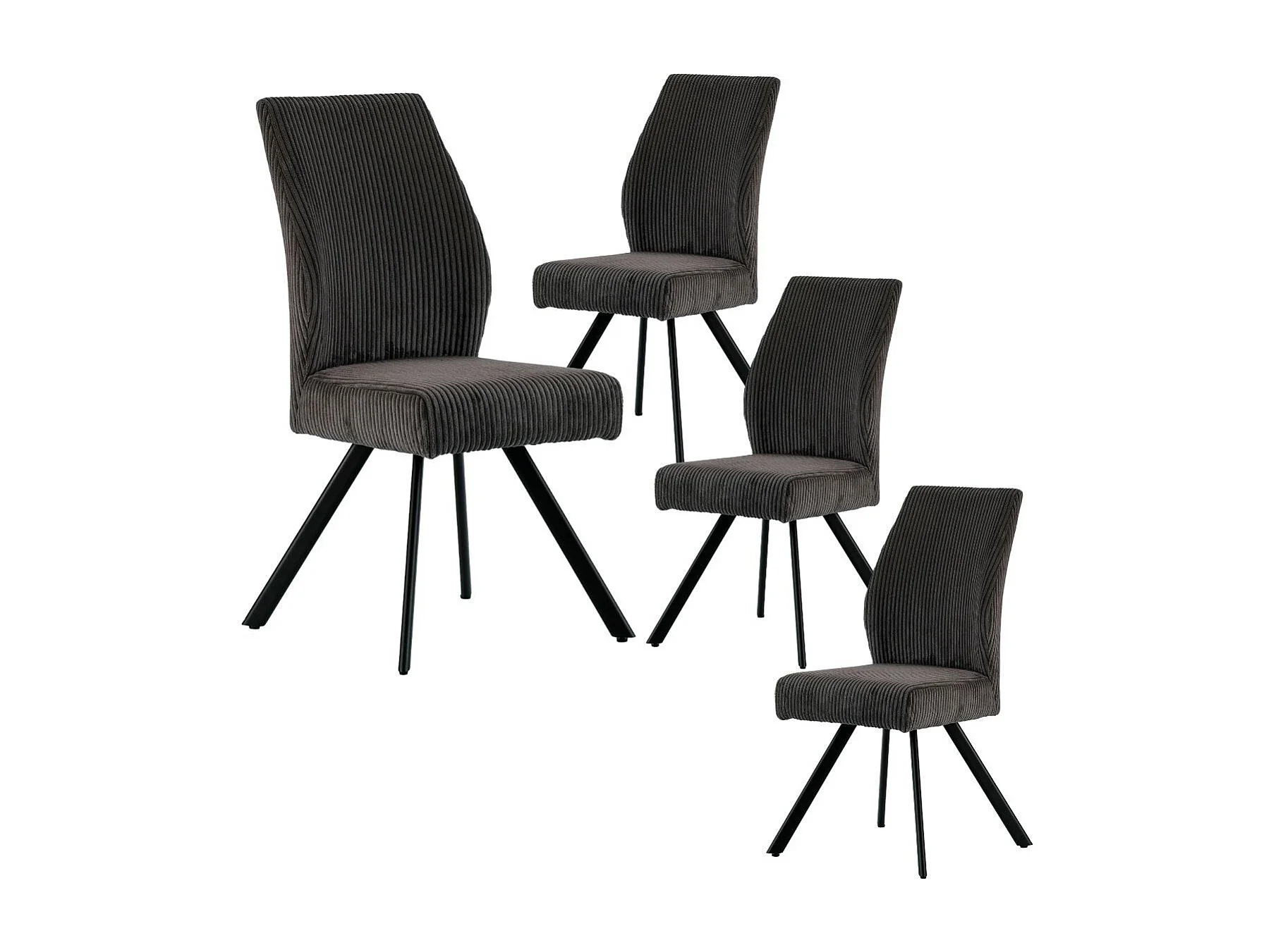 Lot de 4 chaises en velours côtelé et pieds en métal laqué noir coloris anthracite - BANIL