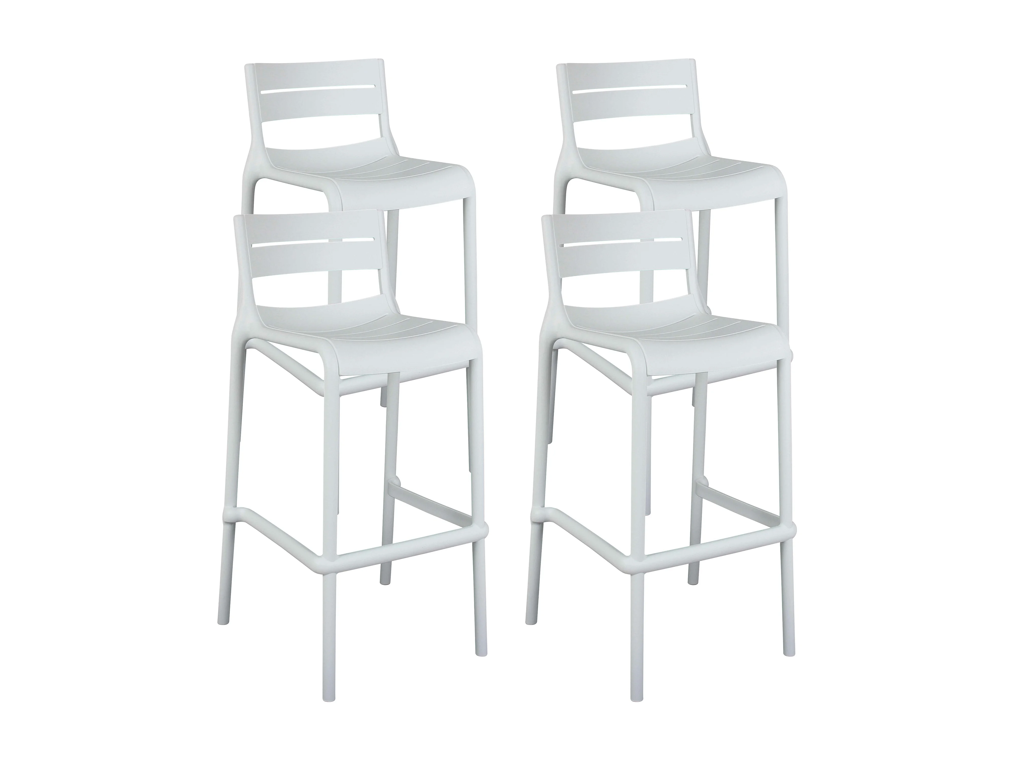 Lot de 4 chaises hautes de terrasse en plastique blanches