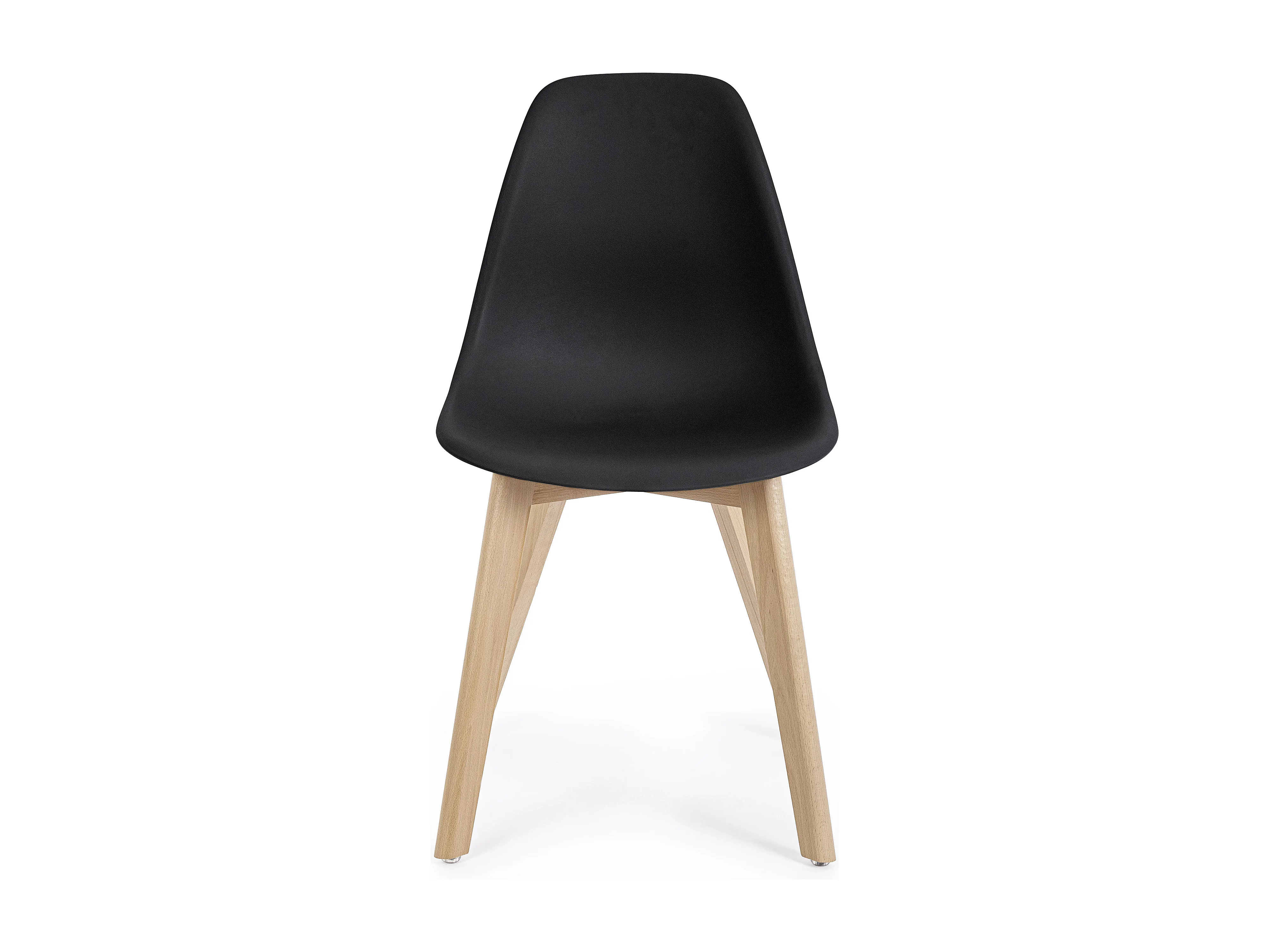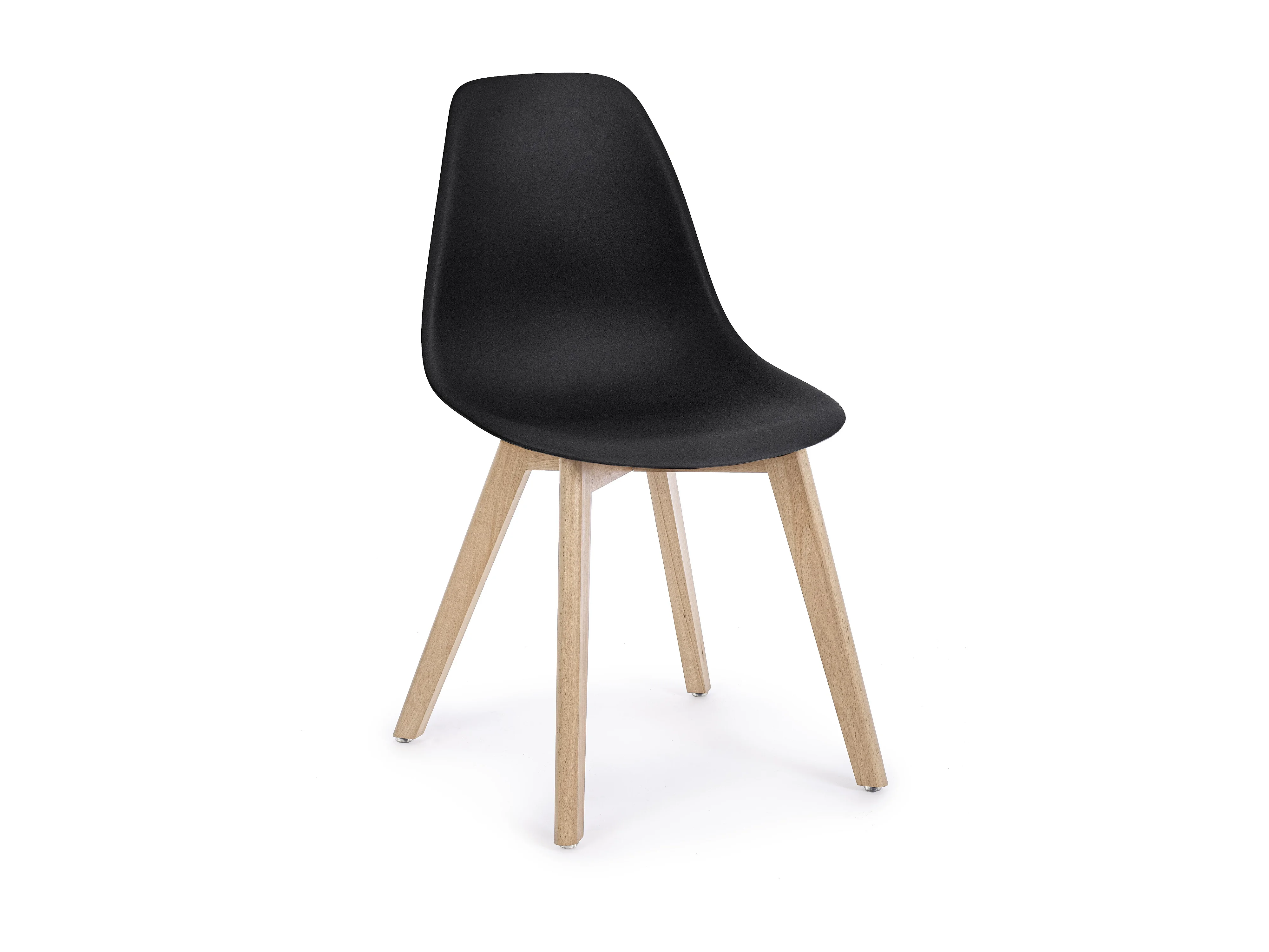 Lot de 4 chaises KAZO – Coque PP renforcée & piétement hêtre-Noir