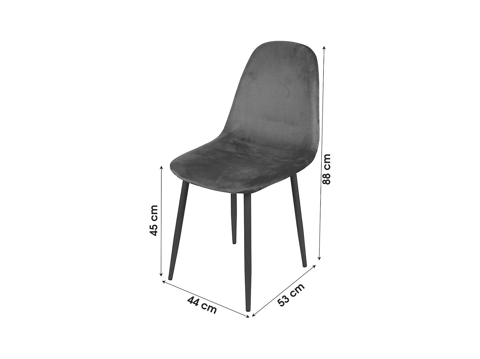 Lot de 4 chaises LOLY, assise et dossier en velours gris, structure en métal noir