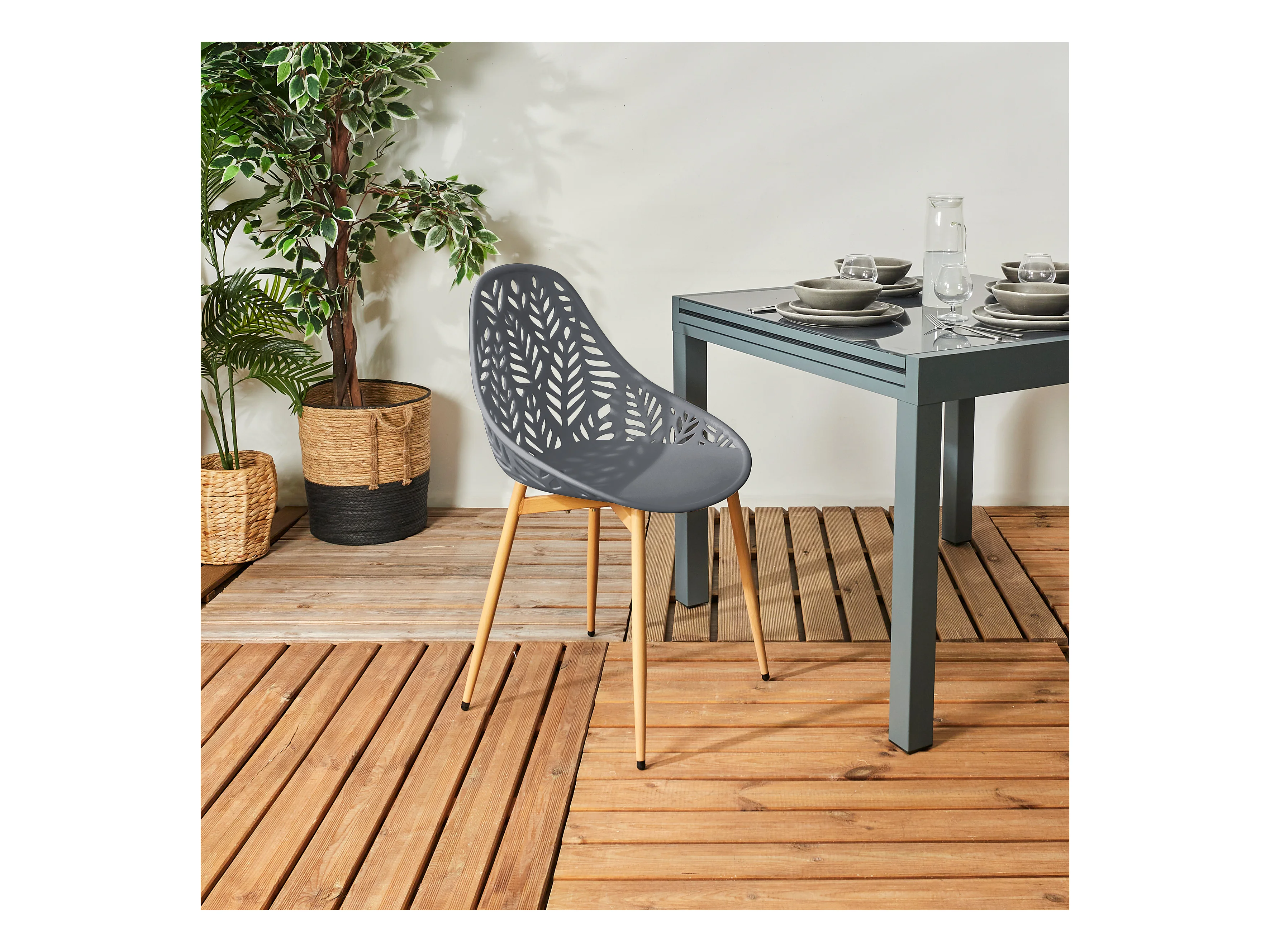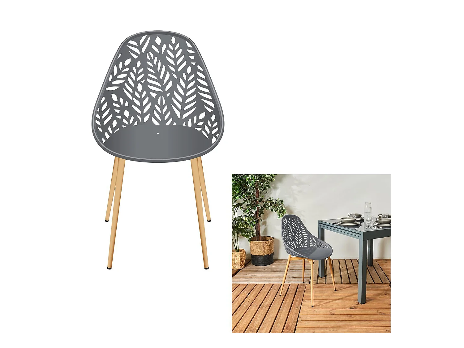 Lot de 4 chaises en polypropylène gris - MALAGA