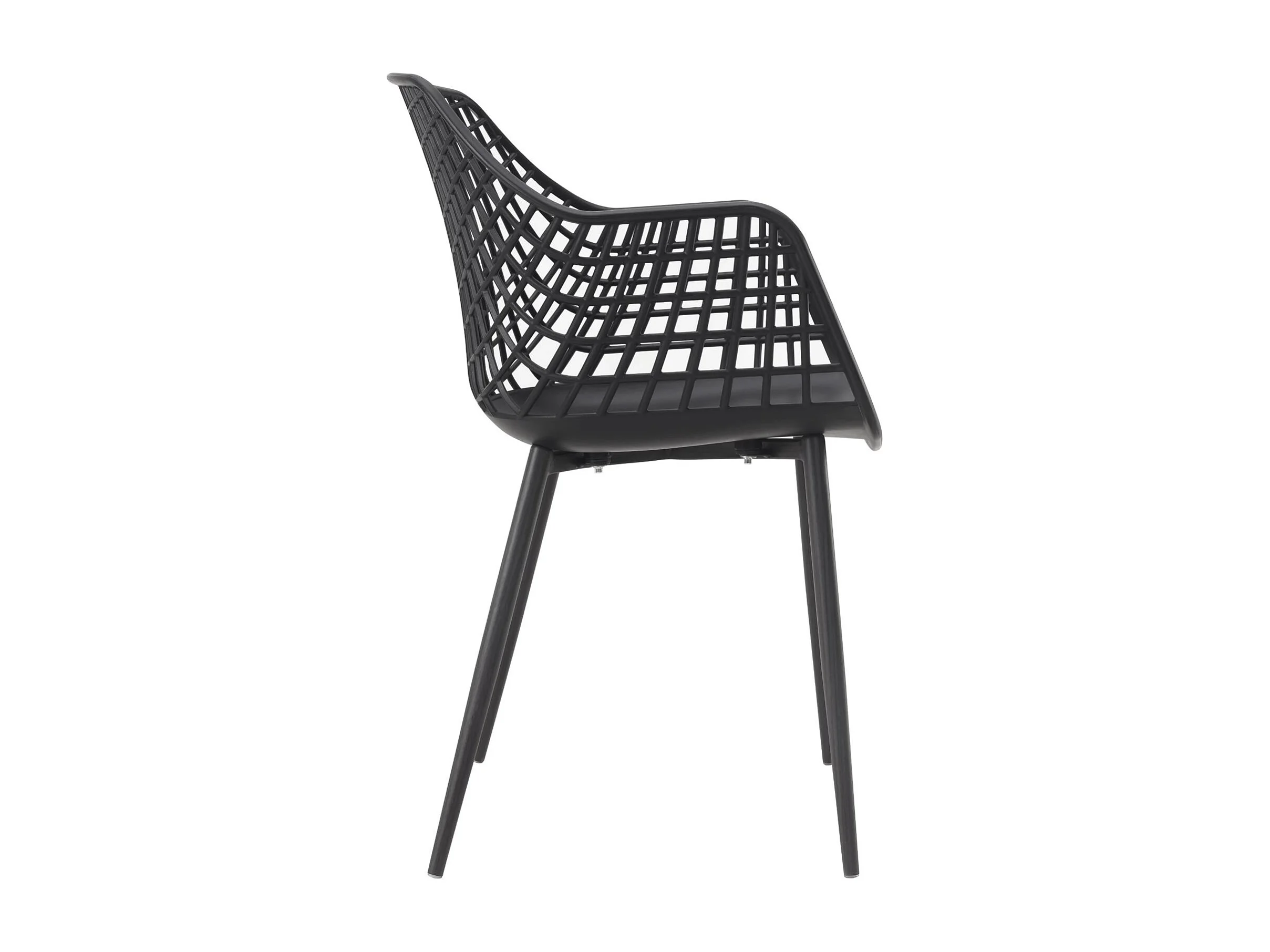 Lot de 4 chaises LUCIA pour salle à manger ou cuisine au design retro avec accoudoirs, coque en plastique noir et 4 pieds métal noir