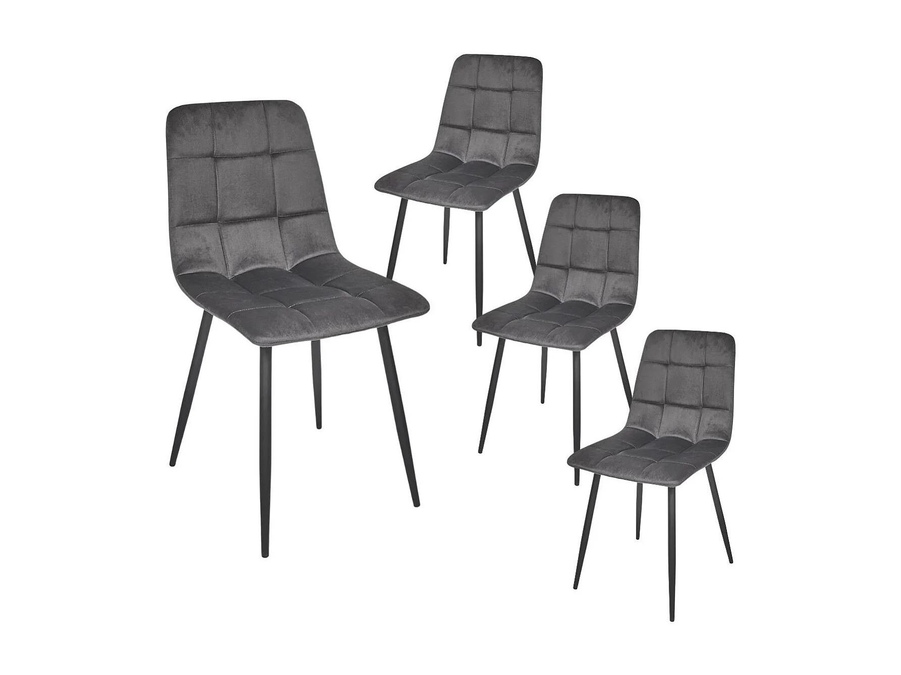 Lot de 4 chaises matelassées en tissu toucher doux gris - MATELIA