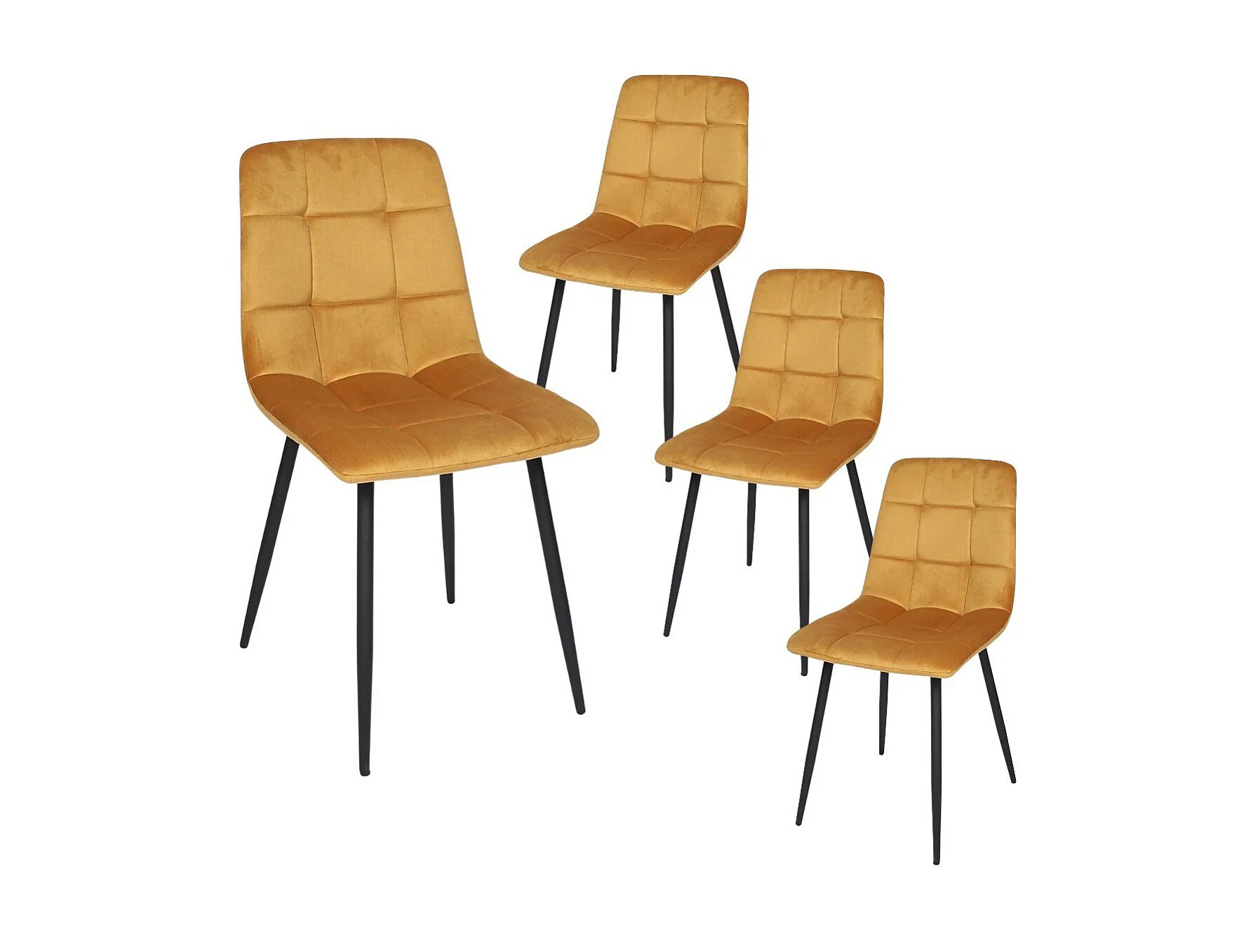 Lot de 4 chaises matelassées en tissu toucher doux jaune - MATELIA