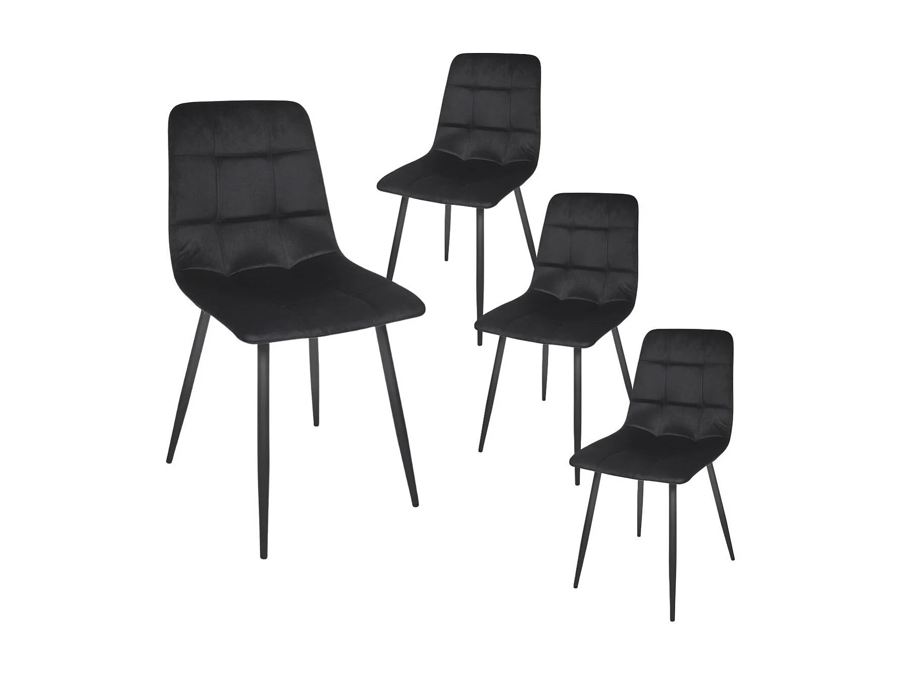 Lot de 4 chaises matelassées en tissu toucher doux noir - MATELIA
