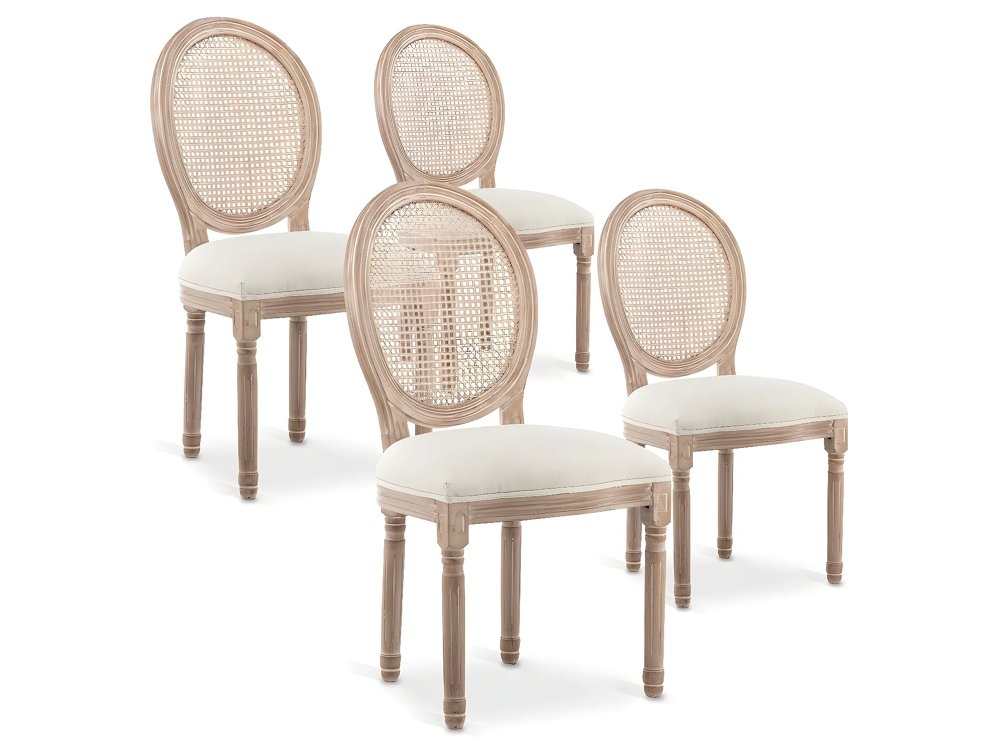 Lot de 4 chaises médaillon Louis XVI Cannage Rotin tissu Beige