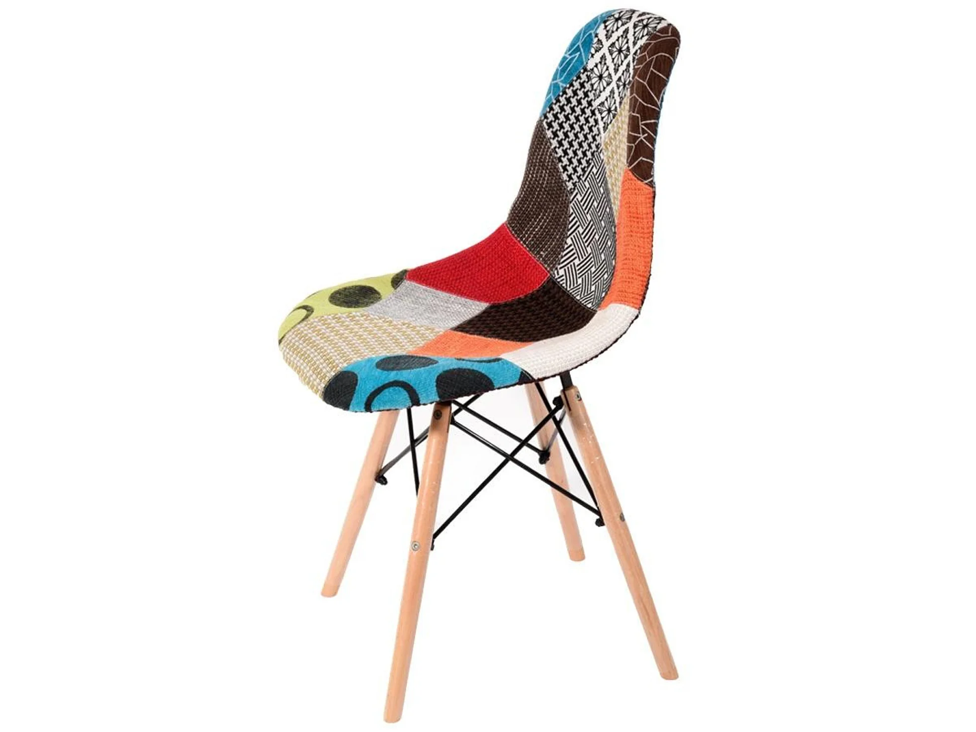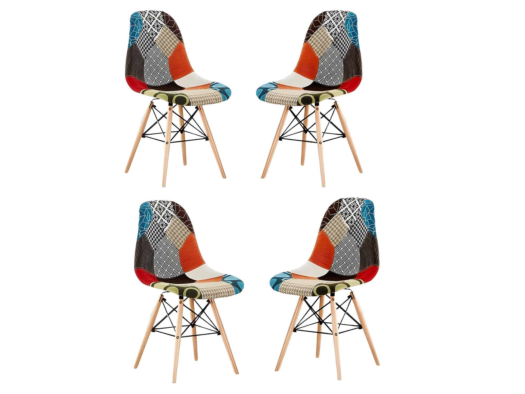 Lot de 4 chaises Moda patchwork Tulip - Tissu recouvert de pieds en bois - Multicolore