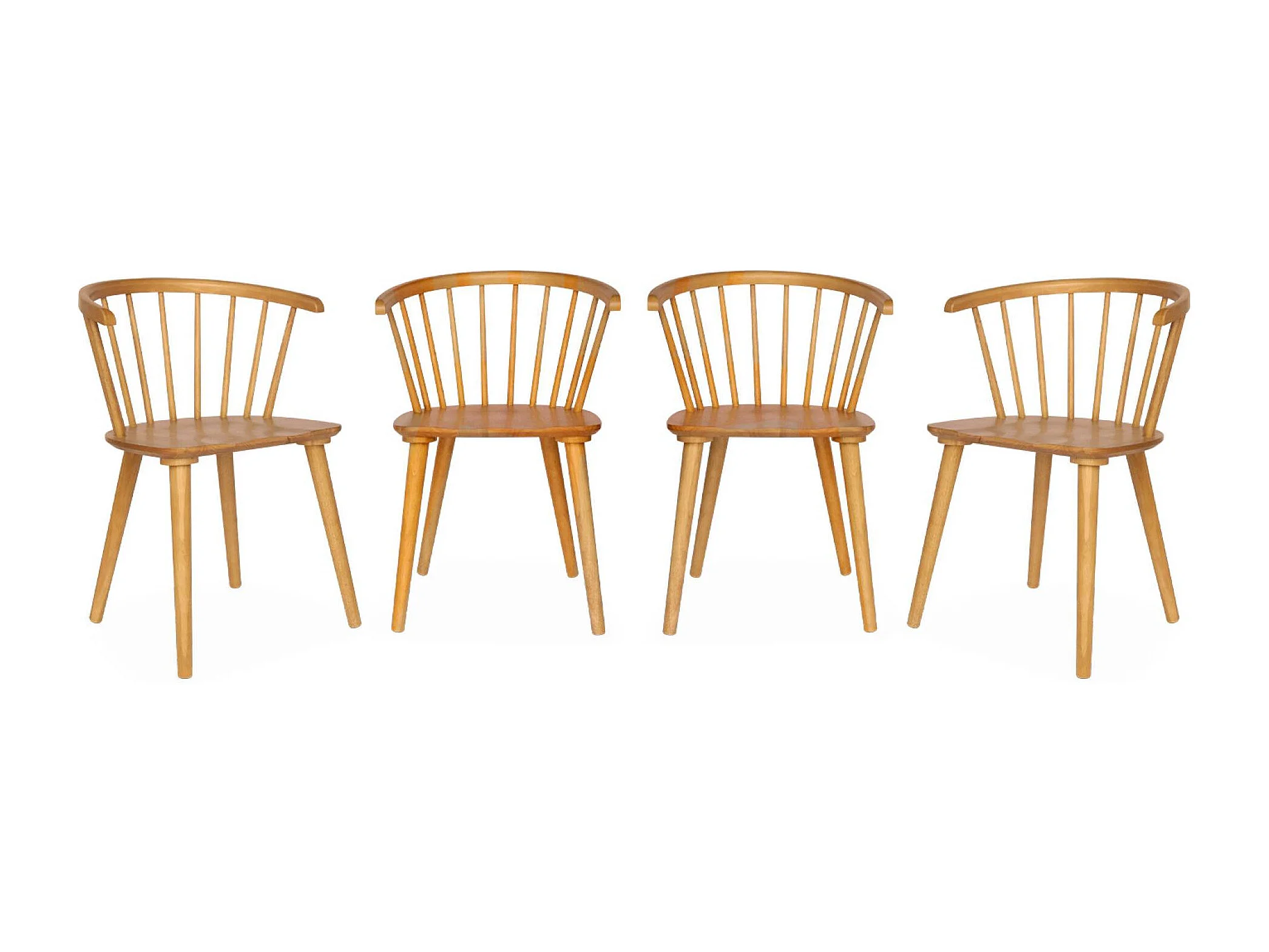Lot de 4 chaises naturelles à barreaux en bois et contreplaqué. Paula. L 51 x P 53 x H 75cm