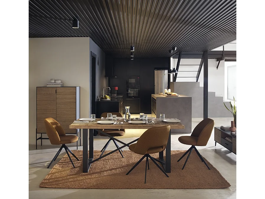 Lot de 4 chaises pivotantes rembourrées nid d'abeille moutarde avec pieds métalliques noirs