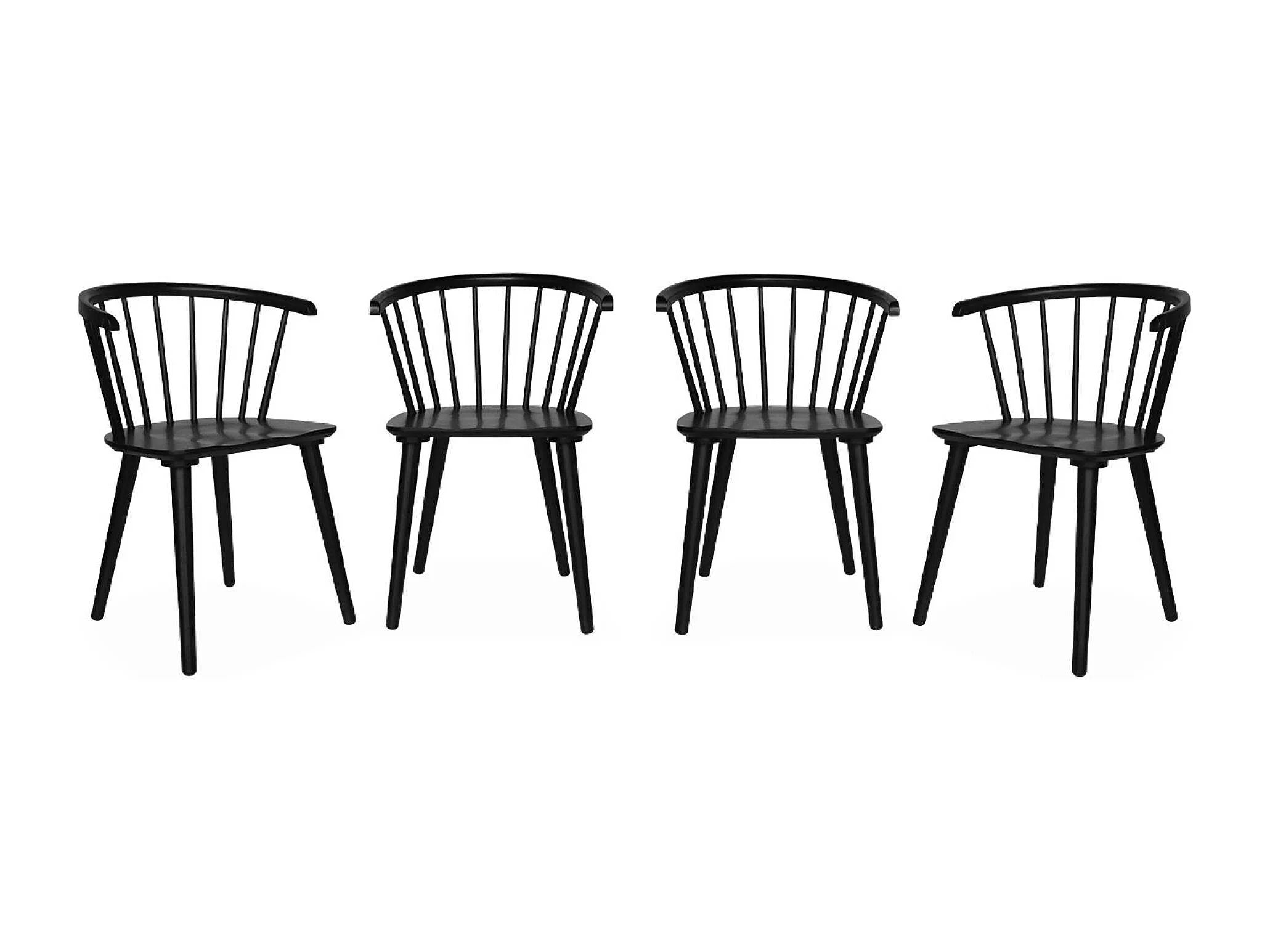 Lot de 4 chaises noires à barreaux en bois et contreplaqué. Paula. L 51 x P 53 x H 75cm