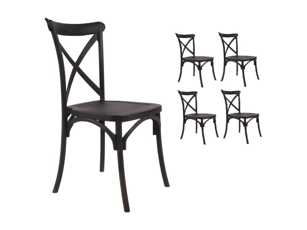 Lot de 4 chaises noires style BISTROT en résine polypropylène