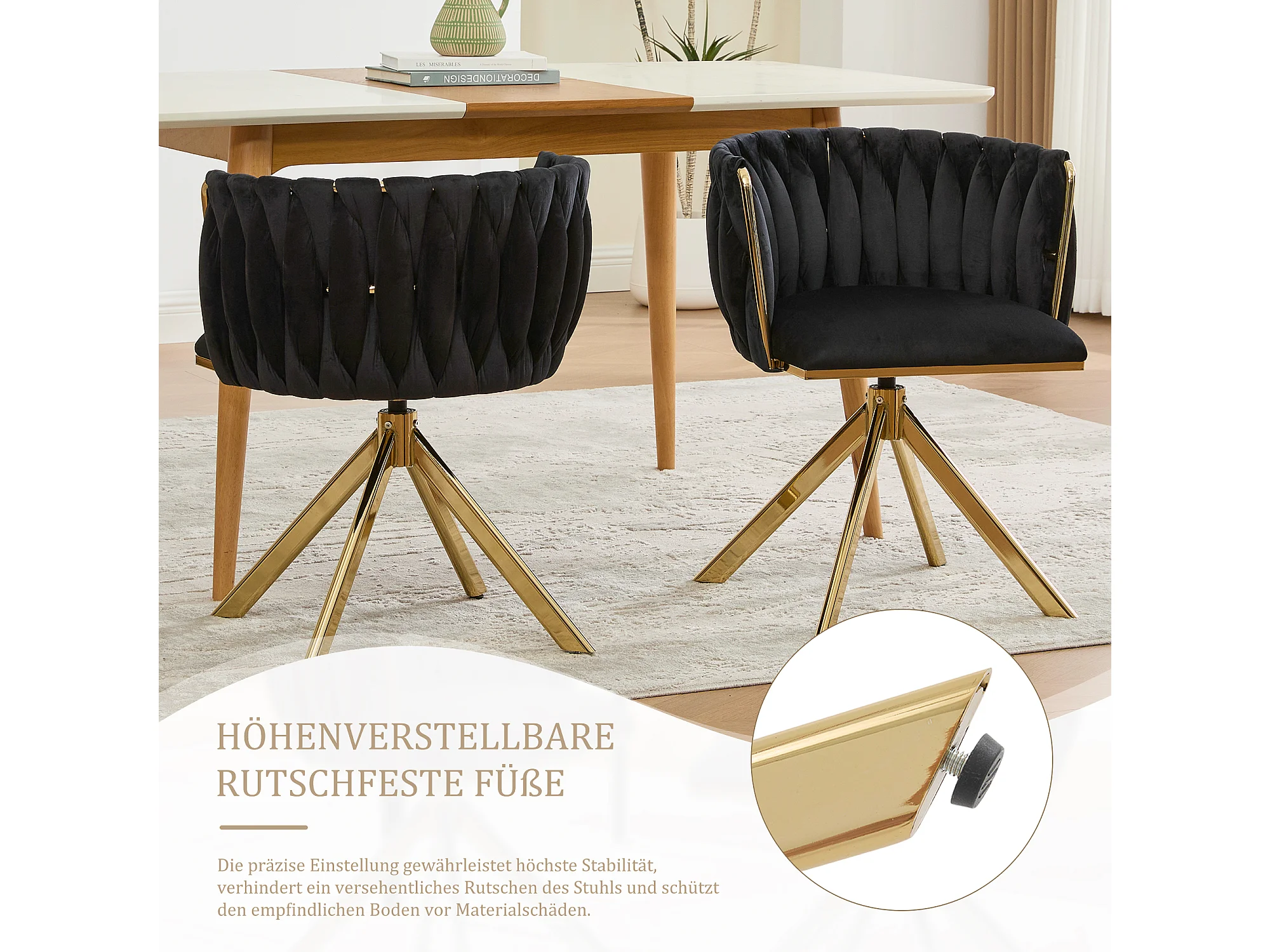 Lot de 4 Chaises pivotante noires - Chaise coquillage avec pieds en métal doré - Style contemporain