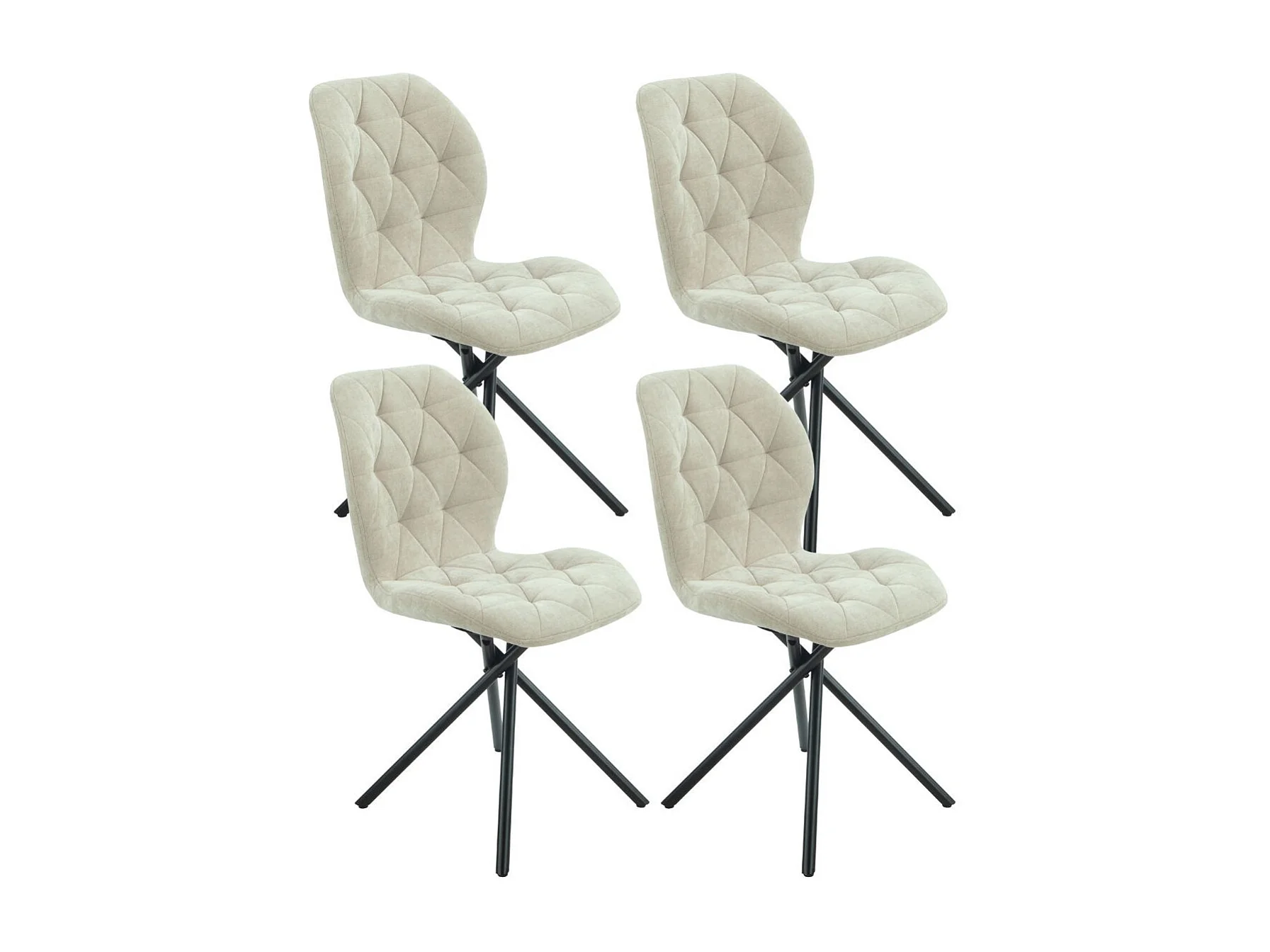 Lot de 4 chaises pivotantes en tissu déperlant beige avec piqûres décoratives losanges - NOLYA
