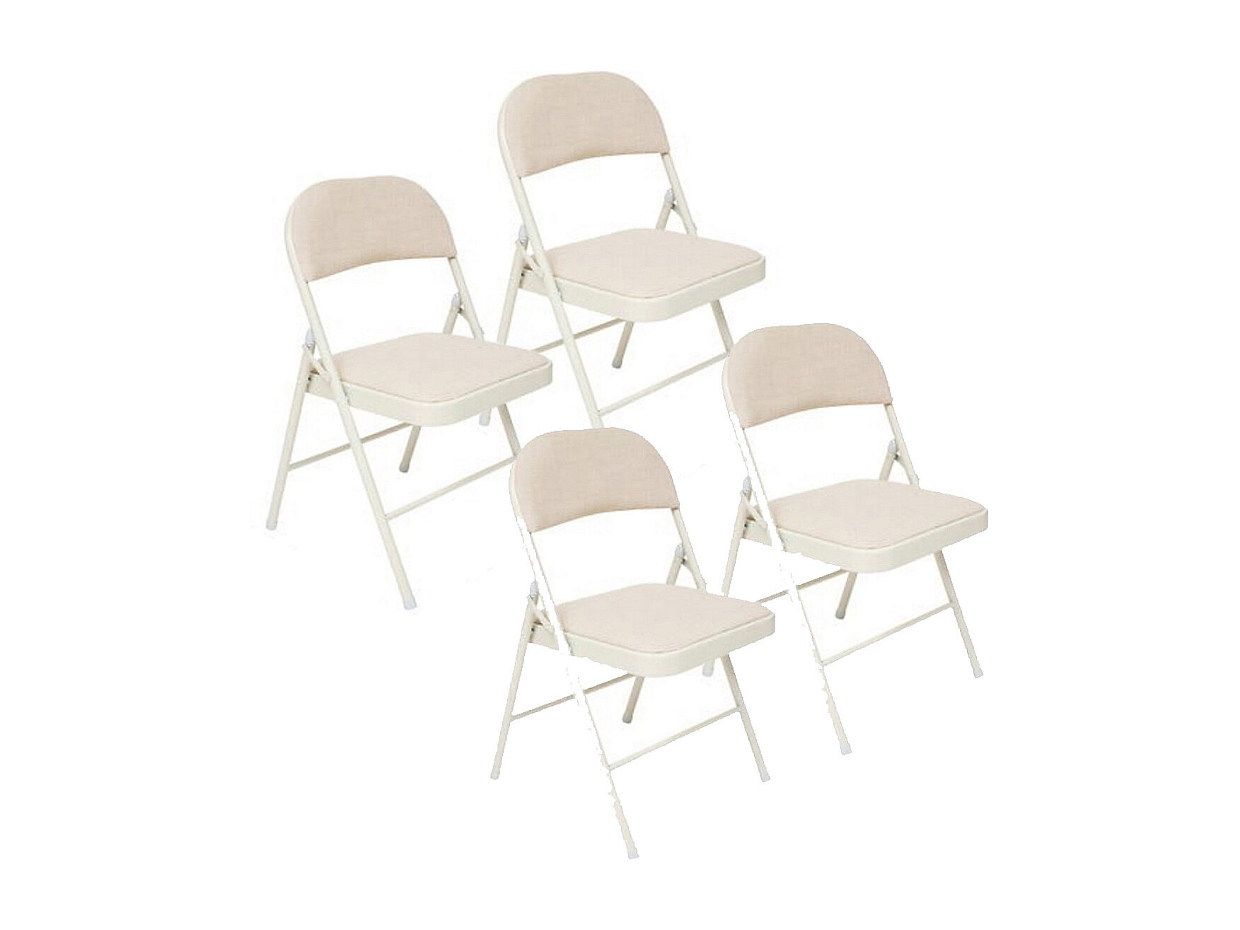 Lot de 4 Chaises pliante avec structure en métal, assise et dossier coloris beige - Longueur 46,5 x Profondeur 46,5 x Hauteur 79,5 cm