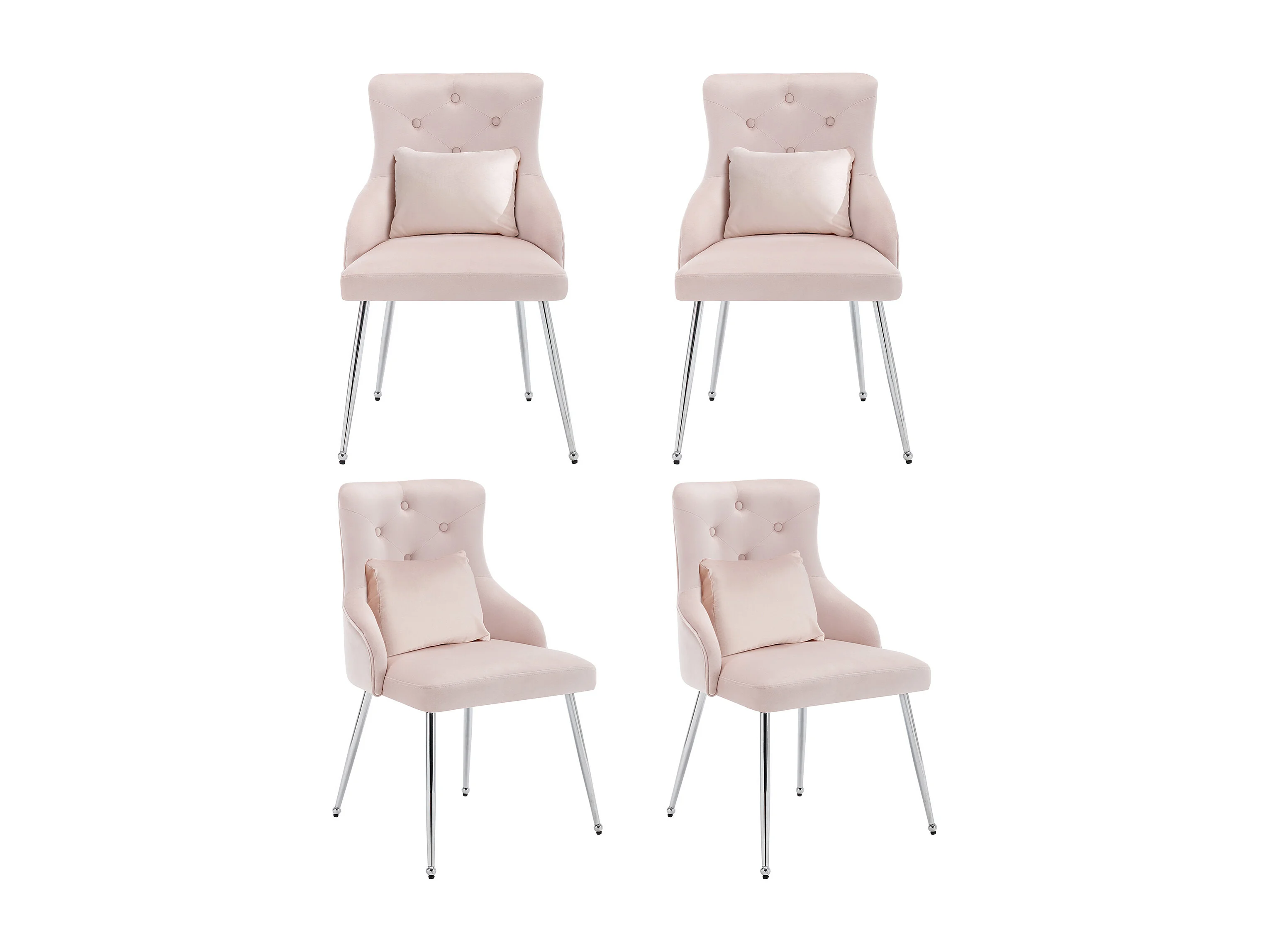 Lot de 4 chaises rembourrées en velours, pieds métal, coussin lombaire, boutons décoratifs – rose