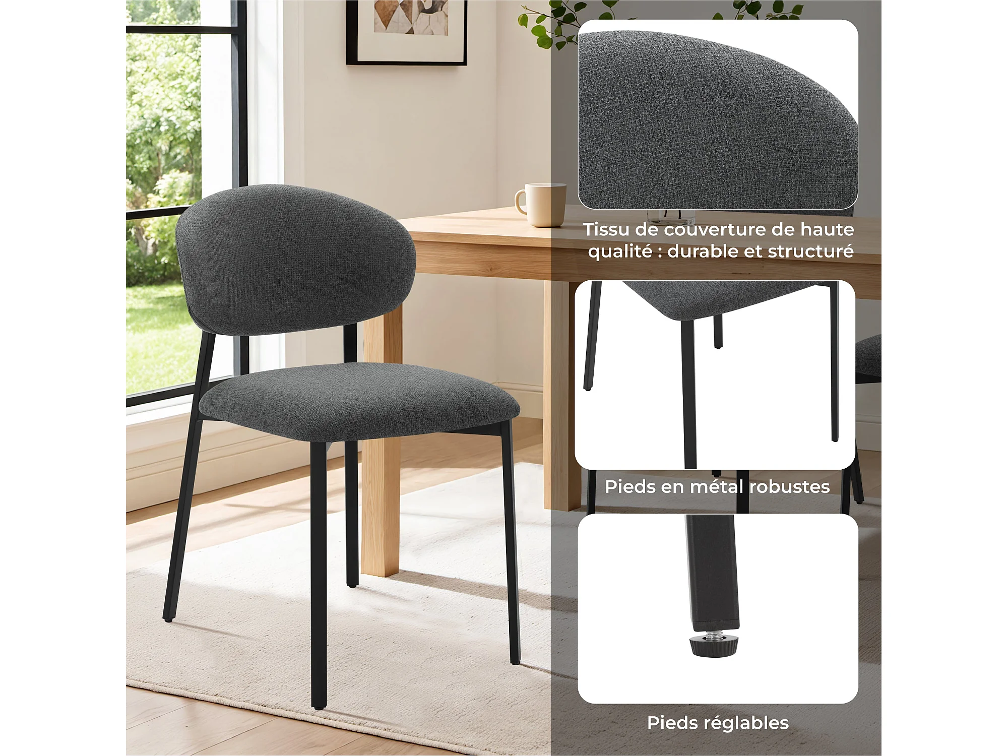 Lot de 4 Chaises Salle à Manger, Chaise Scandinave, Chaise Moderne Idéal pour Salle à Manger,Salon,Cuisine Gris foncé