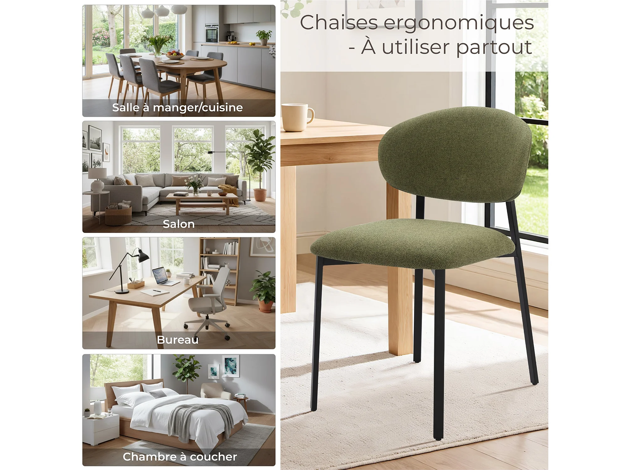 Lot de 4 Chaises Salle à Manger, Chaise Scandinave, Chaise Moderne Idéal pour Salle à Manger,Salon,Cuisine Vert