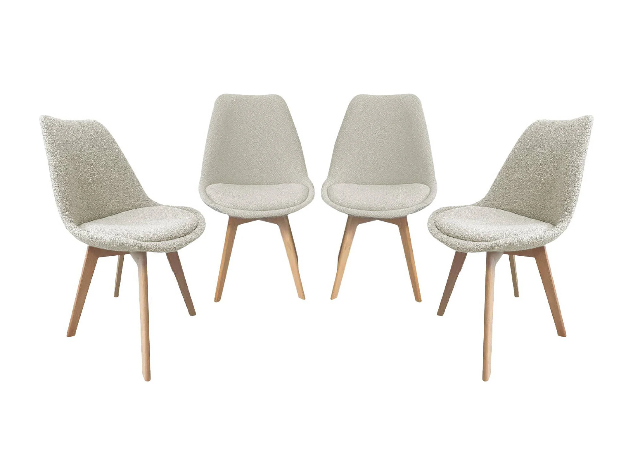 Lot de 4 chaises scandinaves revêtement bouclette texturée blanc. pieds bois de hêtre - Nils