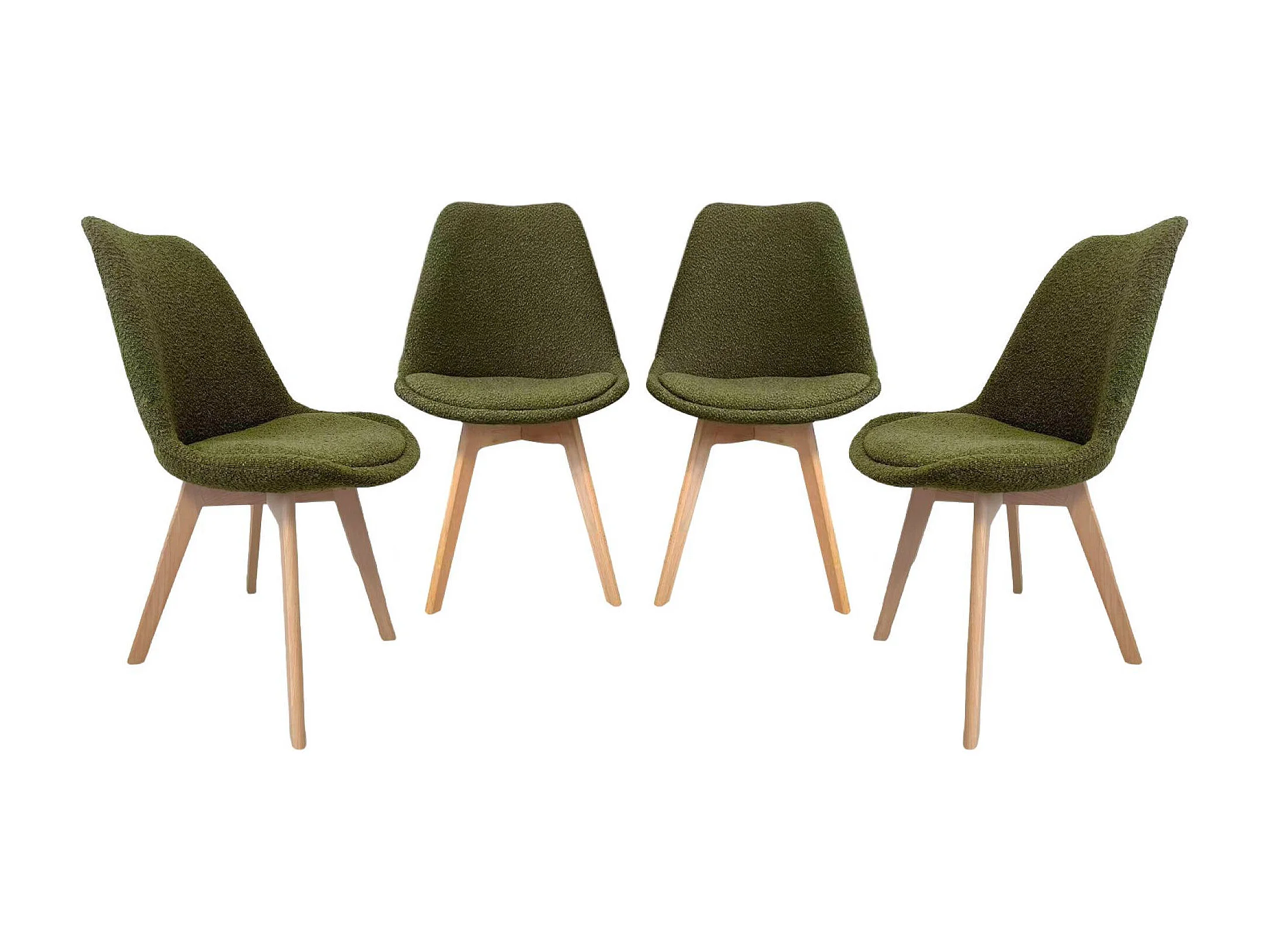 Lot de 4 chaises scandinaves revêtement bouclette texturée kaki. pieds bois de hêtre - Nils