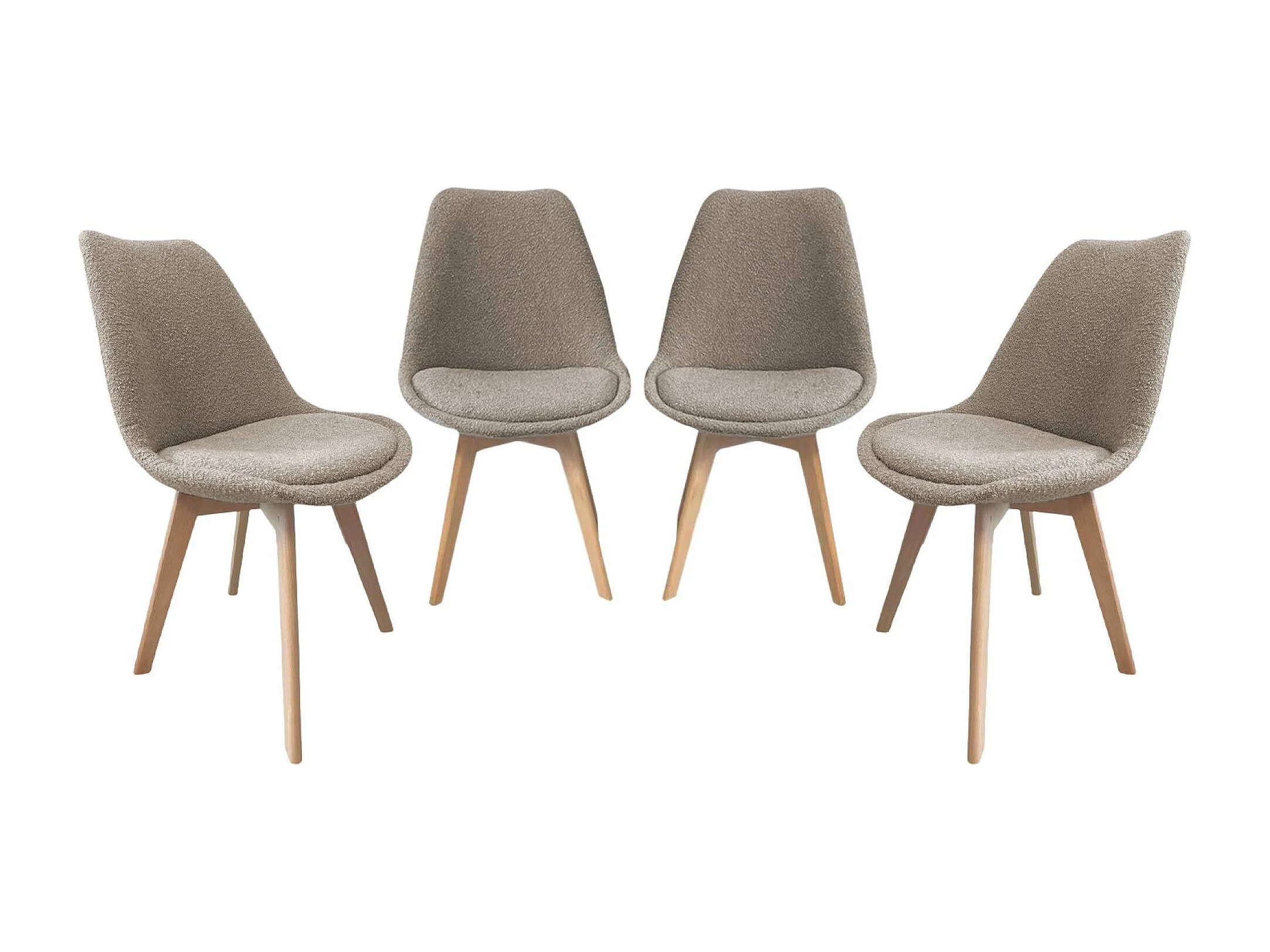 Lot de 4 chaises scandinaves revêtement bouclette texturée taupe. pieds bois de hêtre - Nils