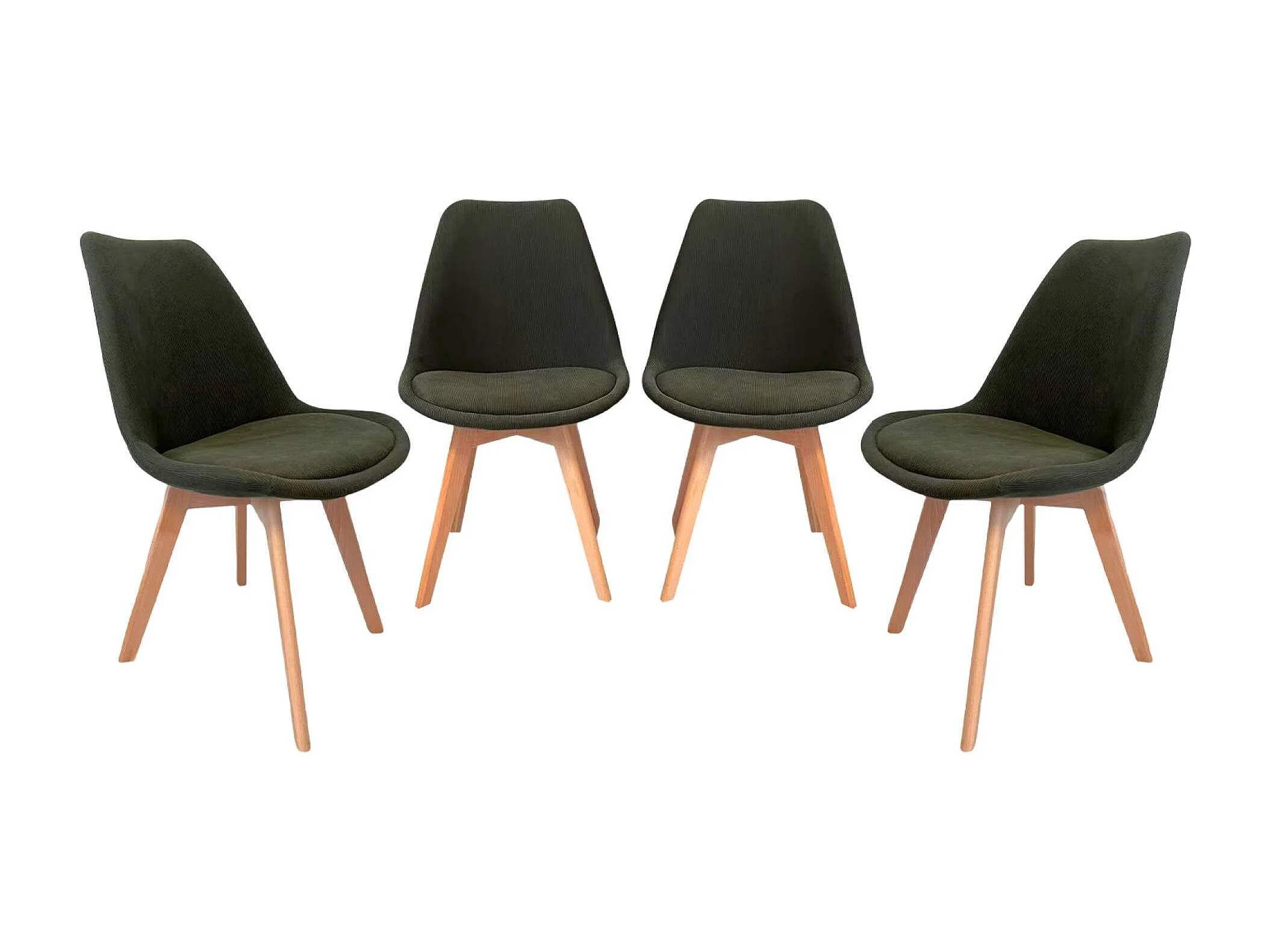 Lot de 4 chaises scandinaves revêtement velours côtelé kaki. pieds bois de hêtre - Nils