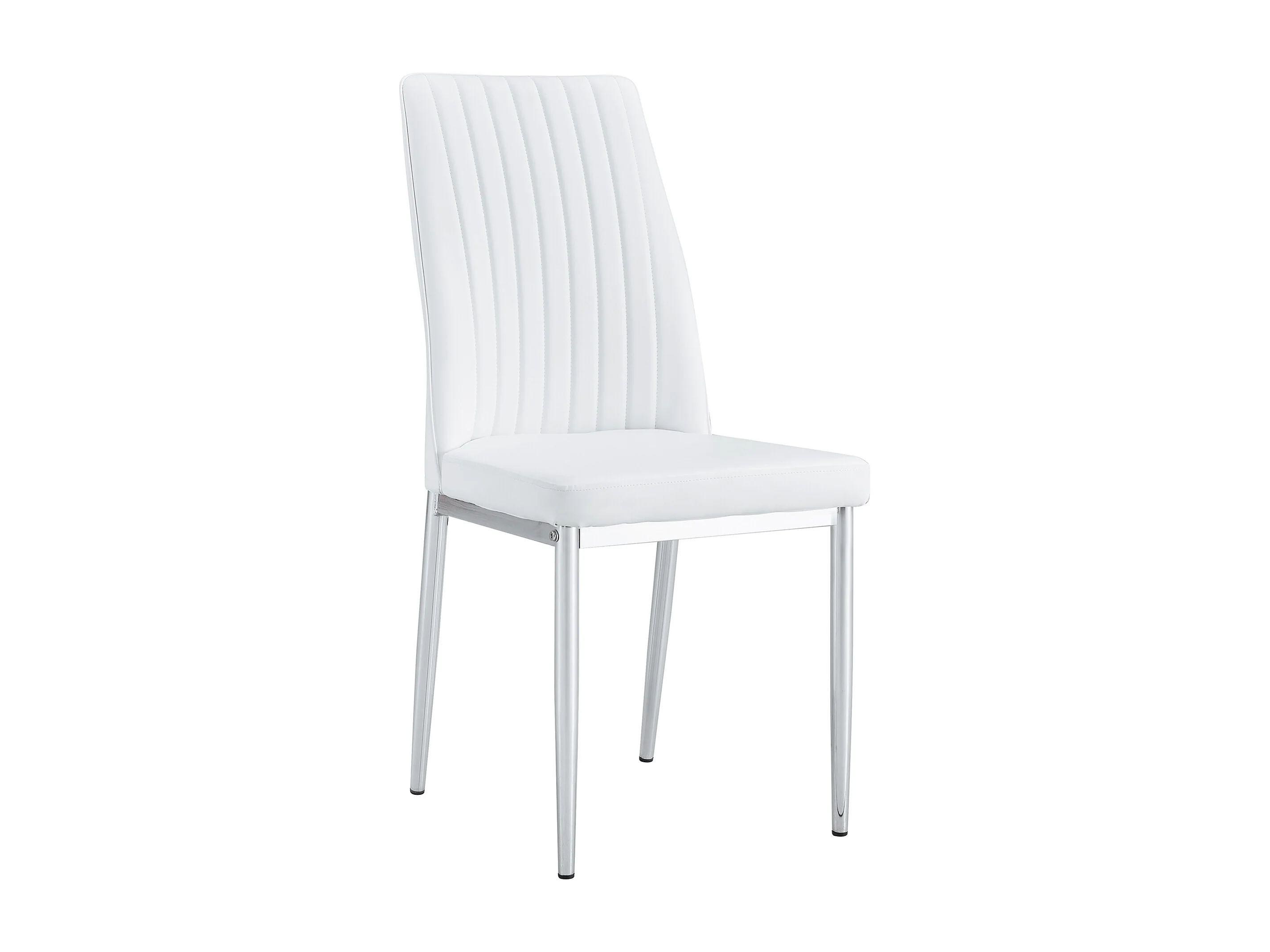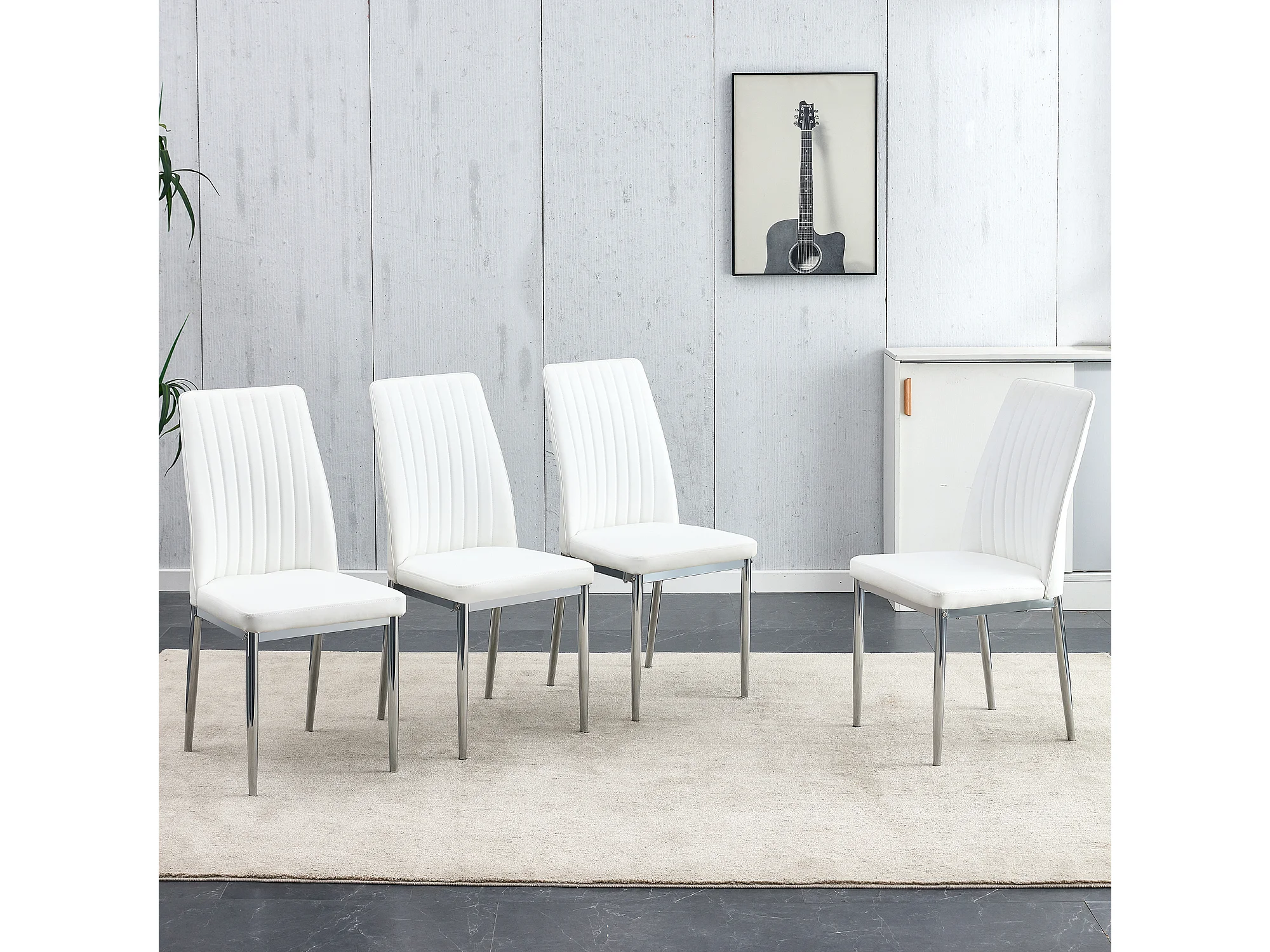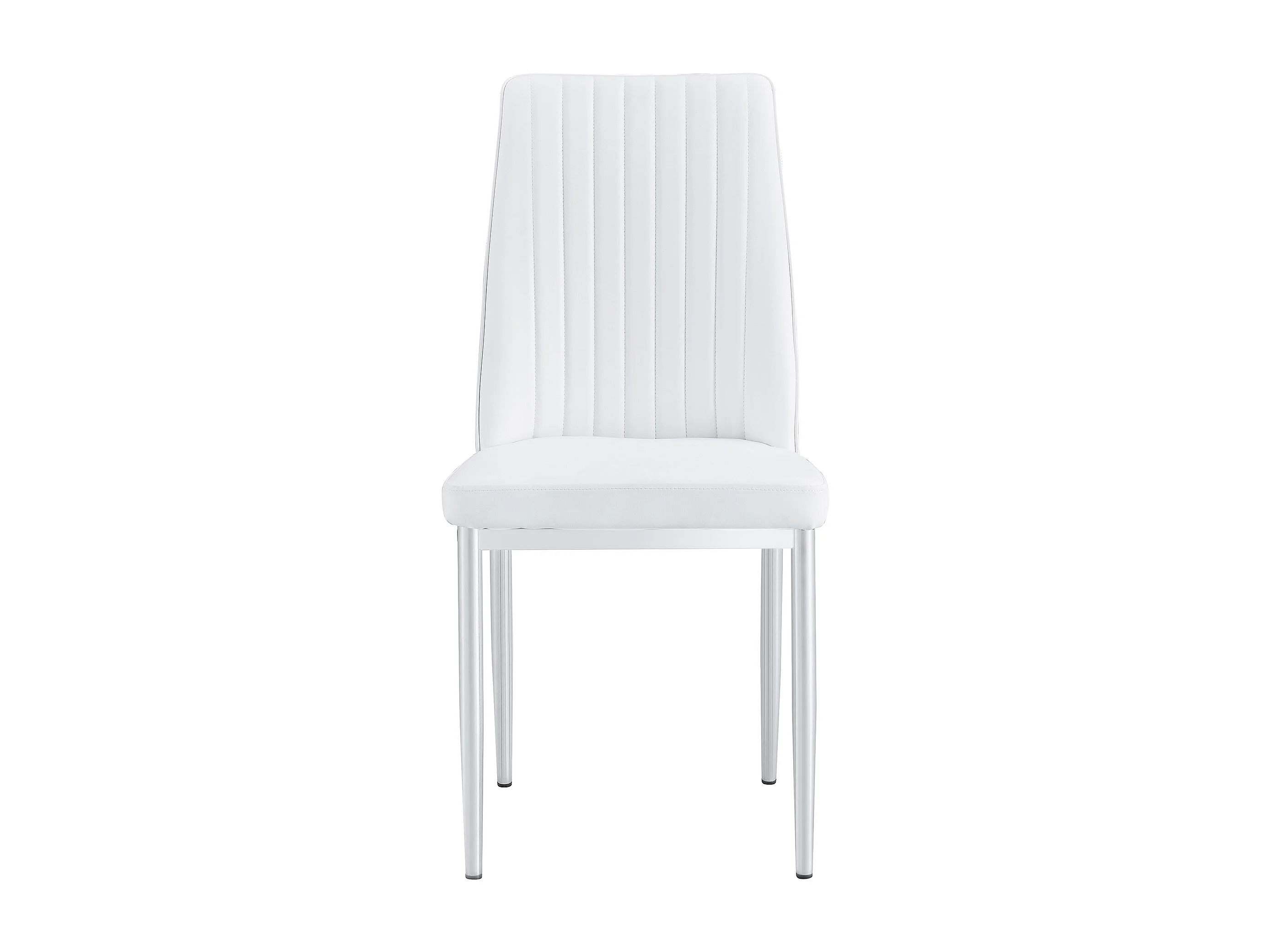 Lot de 4 chaises simili cuir PU blanc - Dossier ergonomique - Pieds métal argenté