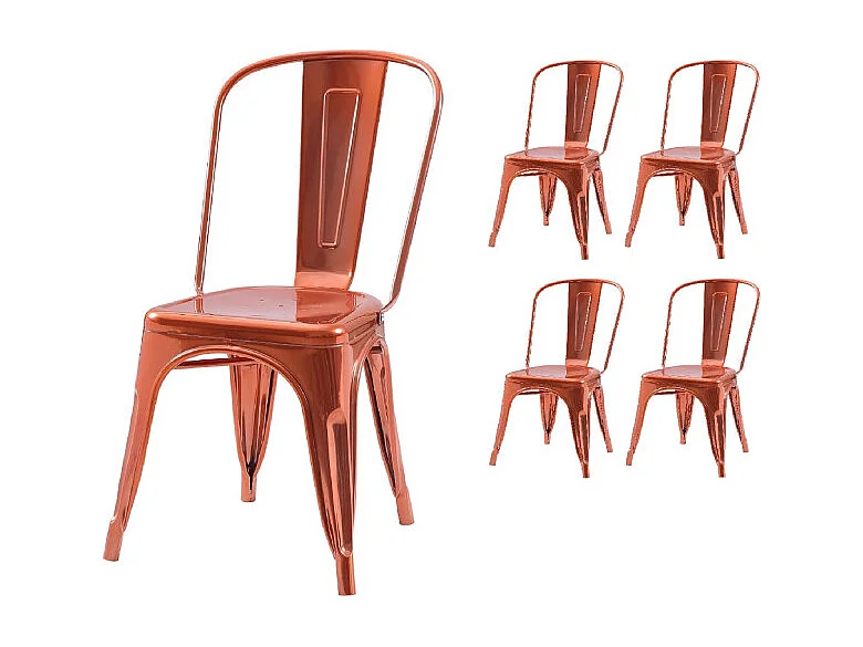 Lot de 4 chaises style industriel en métal couleur cuivre - Finition brillant