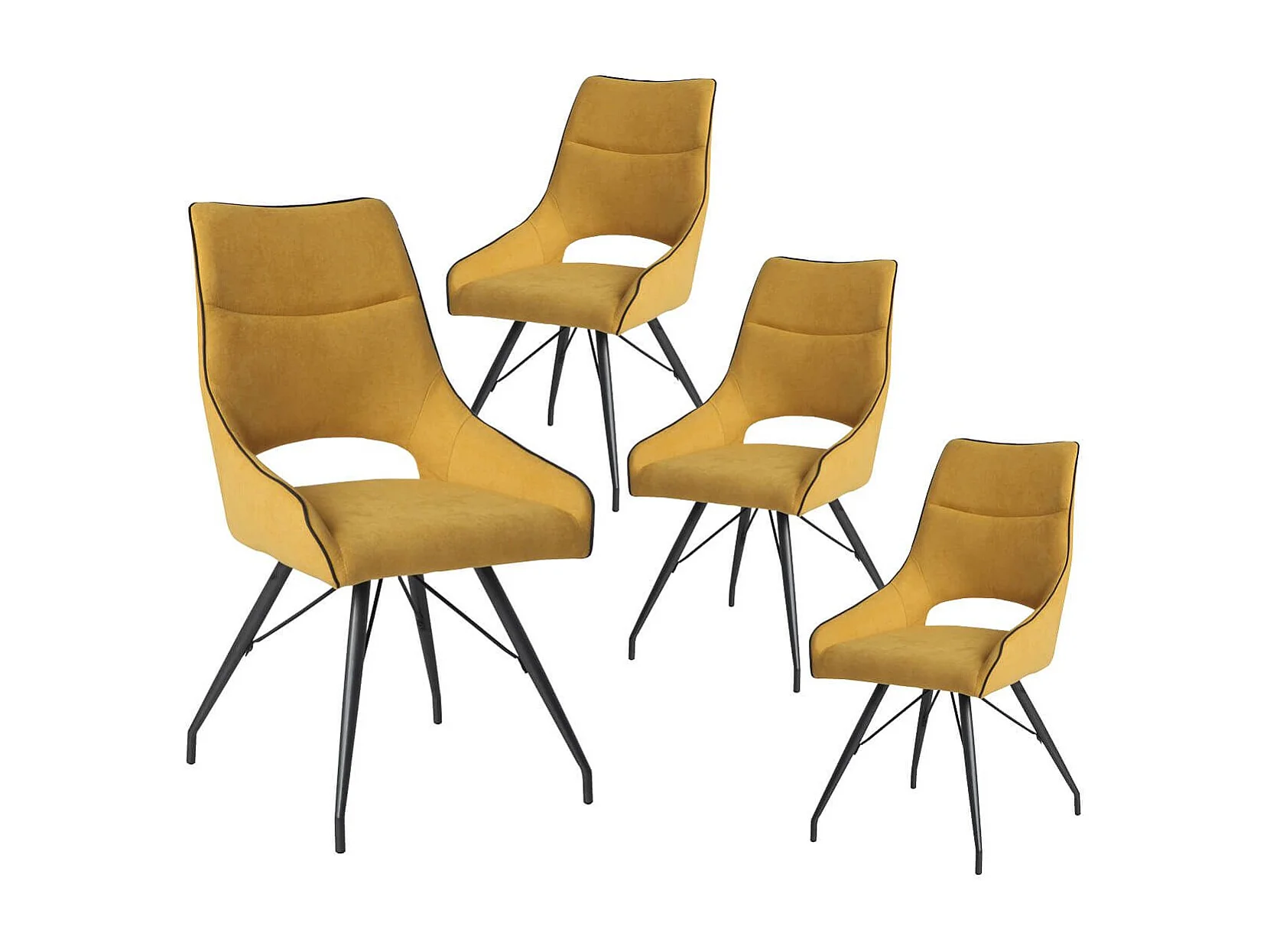 Lot de 4 chaises tissu coloris jaune pieds métal laqué gris - SILOUAN
