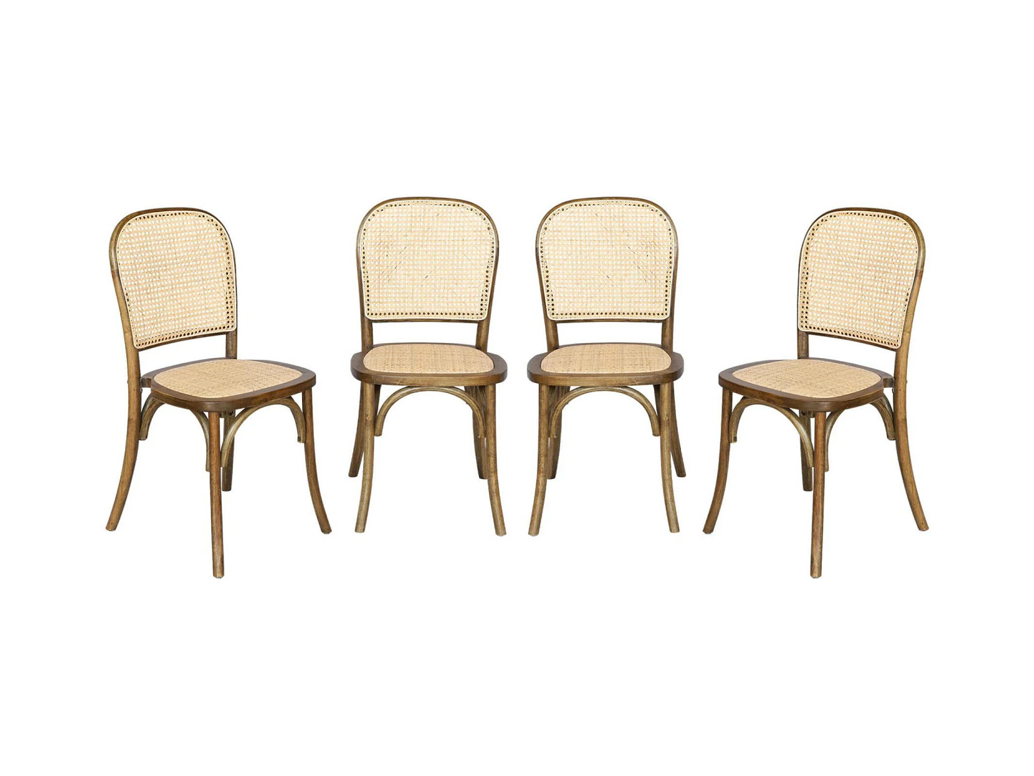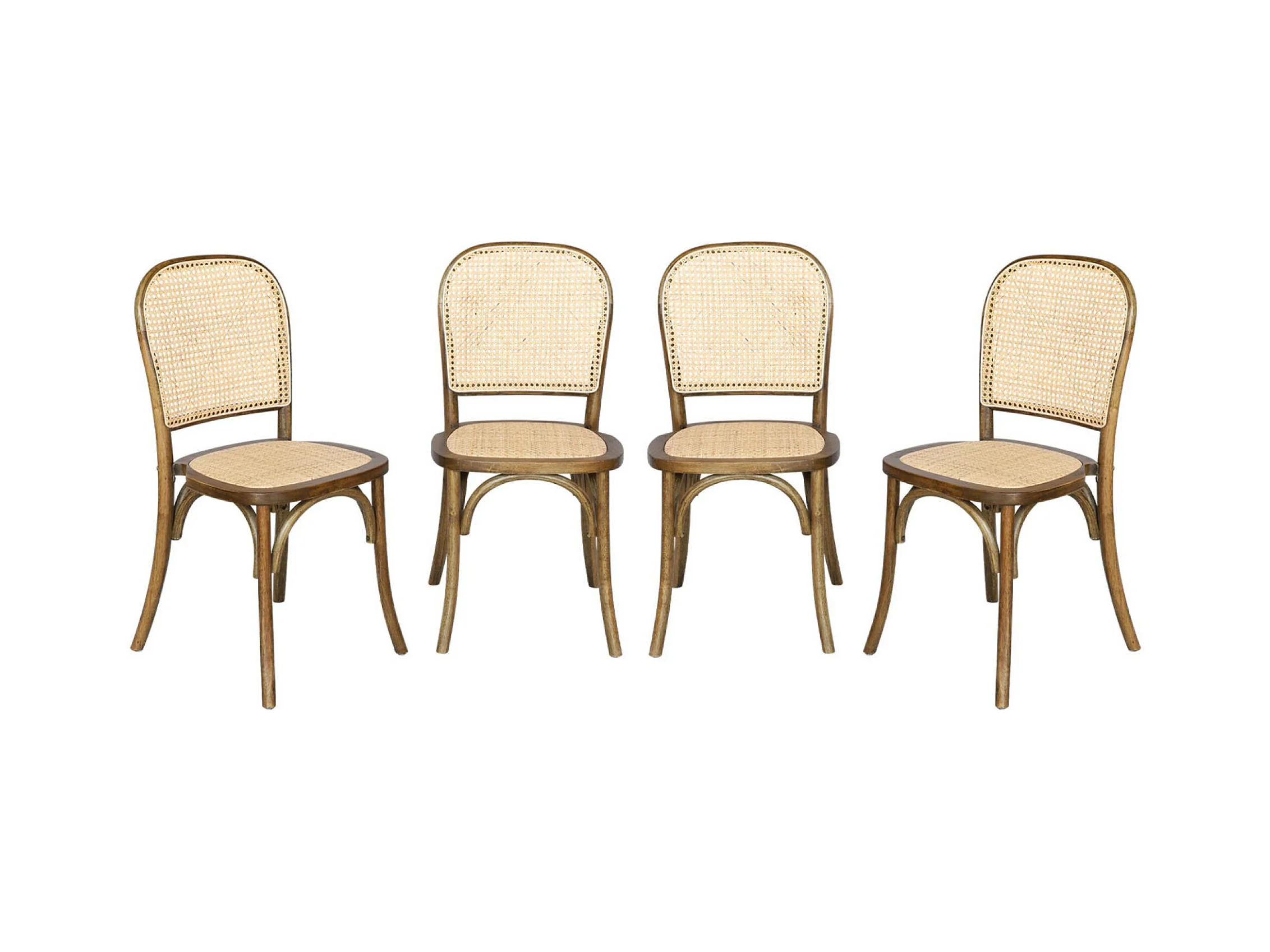 Lot de 4 chaises vintage en bois avec assise et dossier en rotin. coloris marron vieilli. L 44.5 x P 48 x H 89.5cm