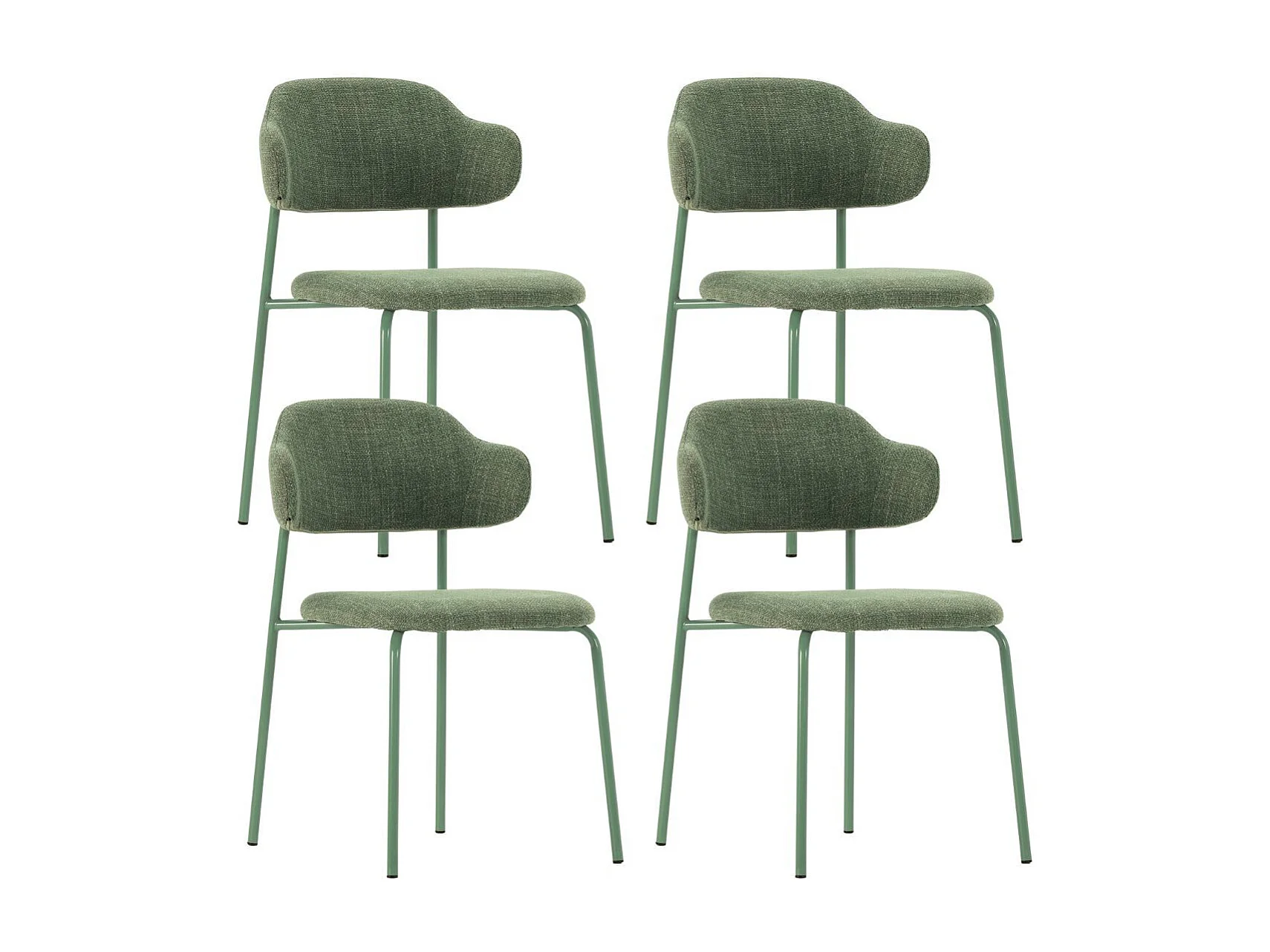 Lot de 4 Chaises vintage en métal avec assise et dossier en tissu chiné vertes - LADERI